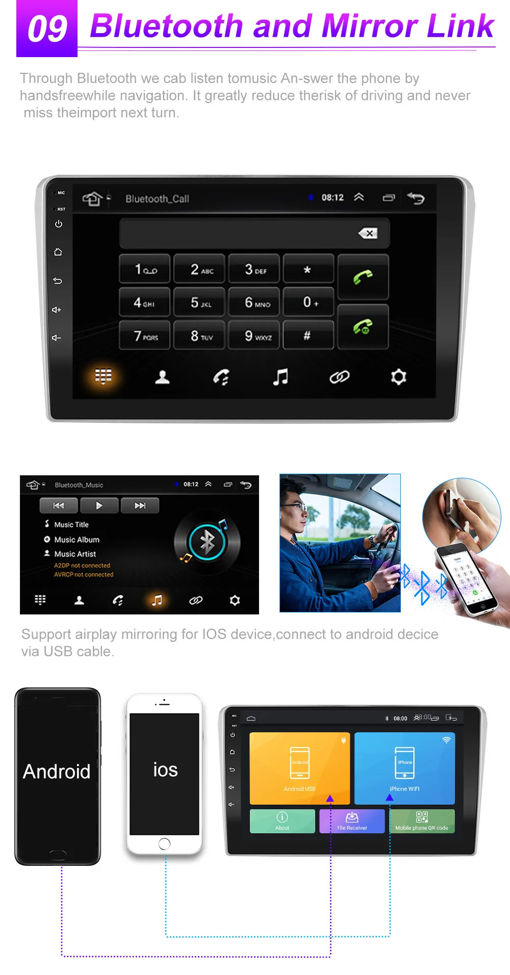4G типы имеют слот для sim-карты 4G и встроенный wifi, независимо от того, где вы едете, вы будете наслаждаться весельем от интернет-серфинга, что делает его возможным для онлайн-навигации/музыки/кино и т. Д.
