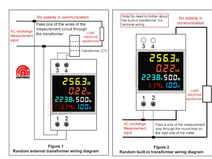 3. Соединения счетчика с трансформатором внешнего тока в качестве Графика 2. Сделайте провод через отверстие в измерителе и Подключите два провода вторичного трансформатора к 3 и 4 клеммам.