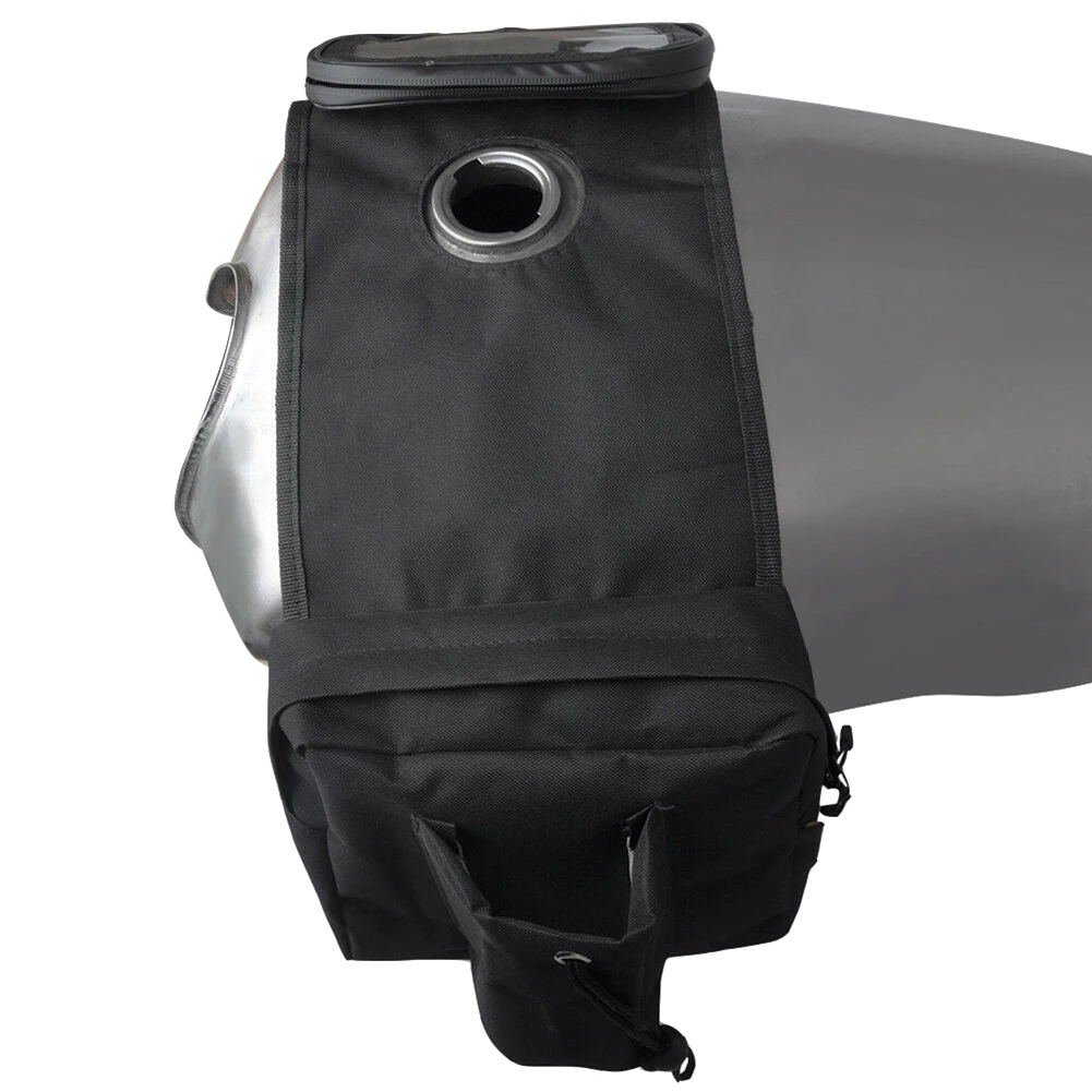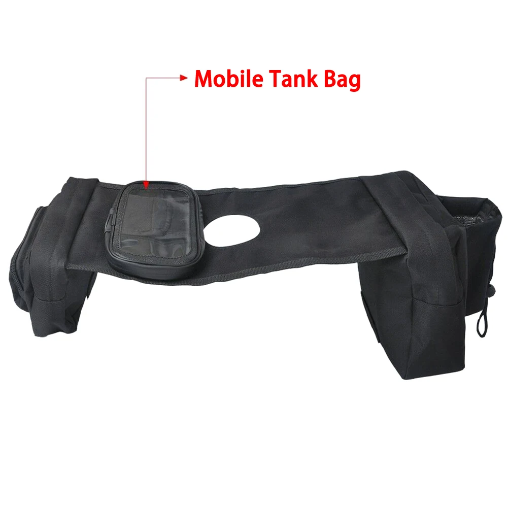 * 3. Два кармана на молнии, Сверхпрочный материал для максимальной прочности, с держателем для бутылки, чтобы держать напитки близко, а другой с эластичным сетчатым мешком, чтобы держать небольшую шестерню под рукой, и легко крепится под газовой крышкой.