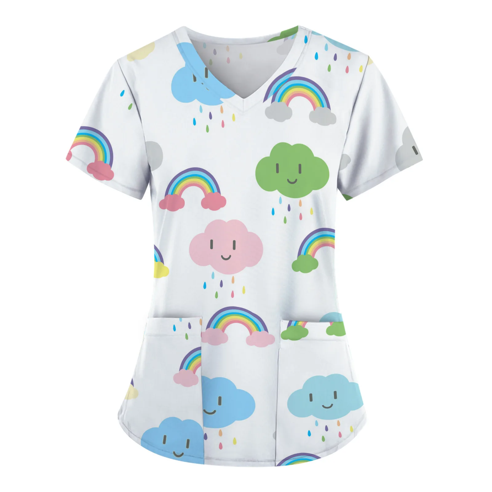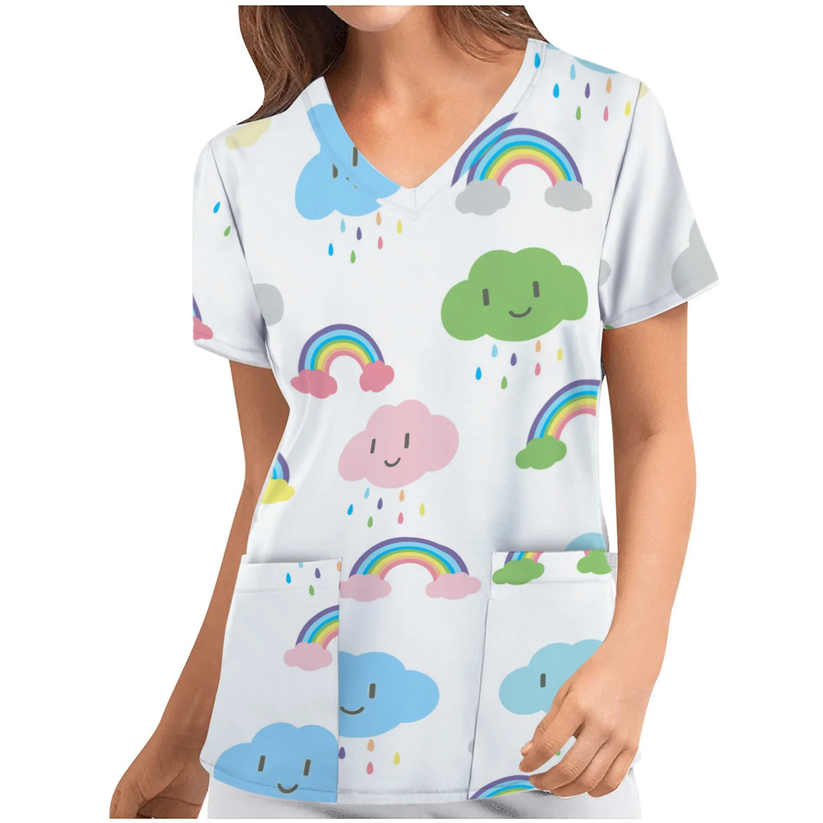 Женская униформа для медсестры с коротким рукавом и v-образным вырезом, топы с рисунком из мультфильма, рабочая форма для медсестер, футболки, топы для медсестер, acessorios femininos