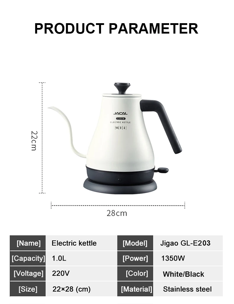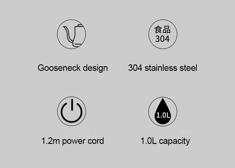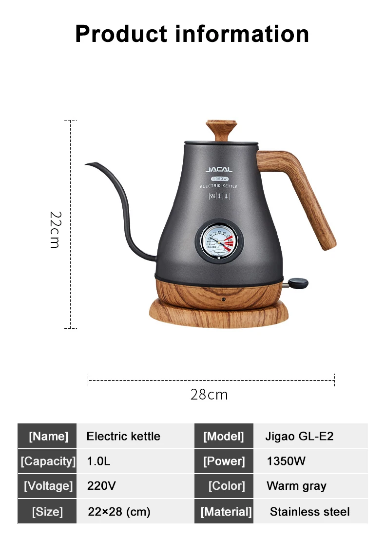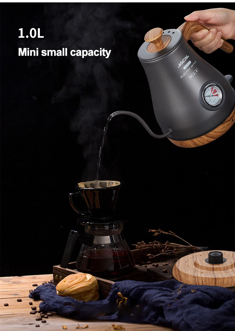1.0L Электрический чайник «гусиная шея» Кофе горшок стройные носик чайника 304 Нержавеющая сталь чайник с внутренним вкладышем с Температура контроллер 220V