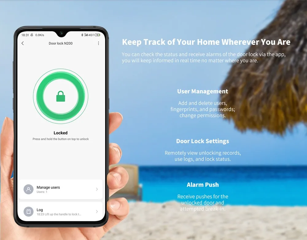 Емкость пользователя: 50 отпечатков пальцев, 50 постоянных паролей, 25 устройств NFC, 25 временных паролей, 8 временных паролей