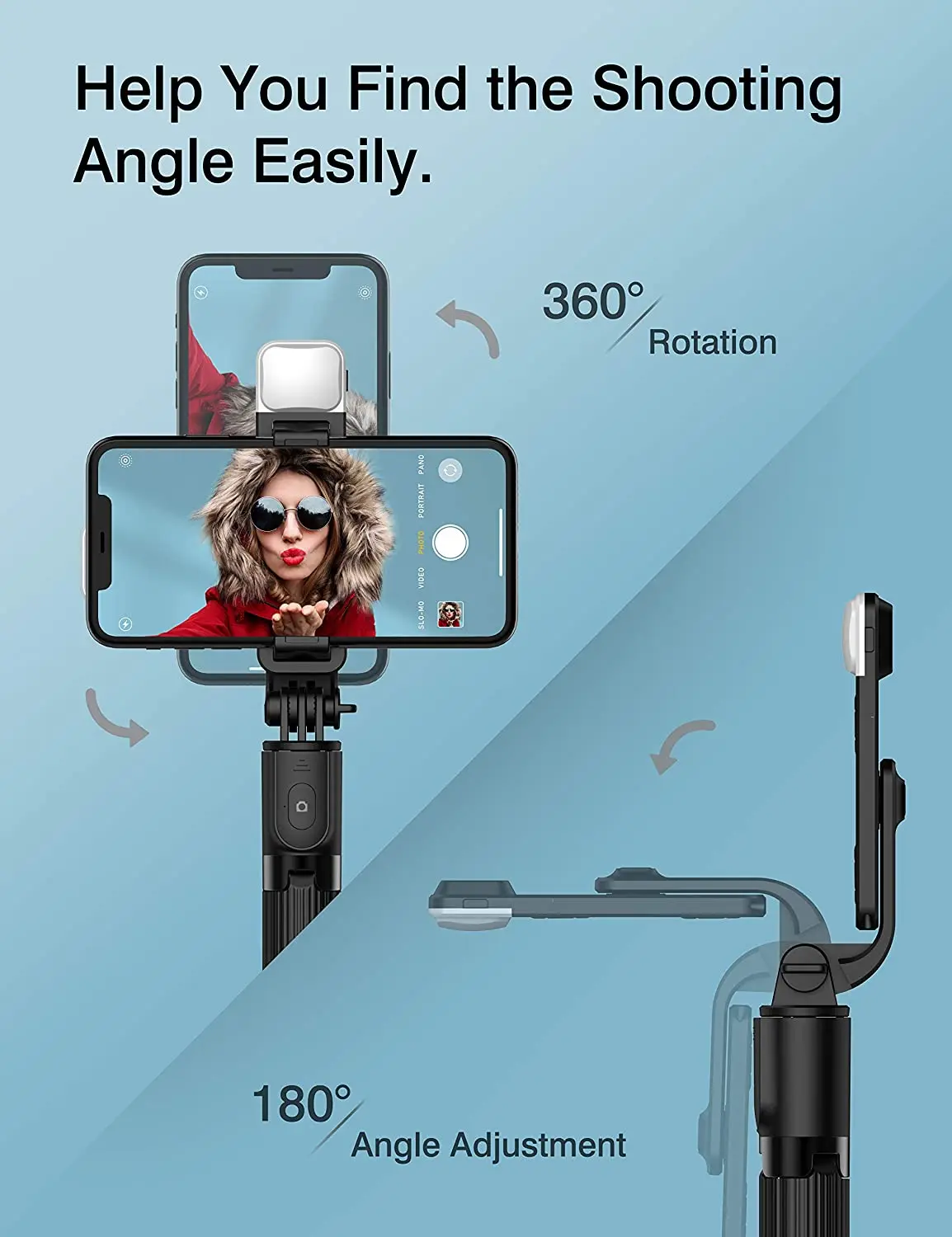 Вращение на 360 ° и регулировка угла на 180 °: эта конструкция не только позволяет выбрать режим горизонтальной или вертикальной камеры, но и лучше подходит под другой угол. Эта композиция более разнообразна, чем обычные палки для селфи.