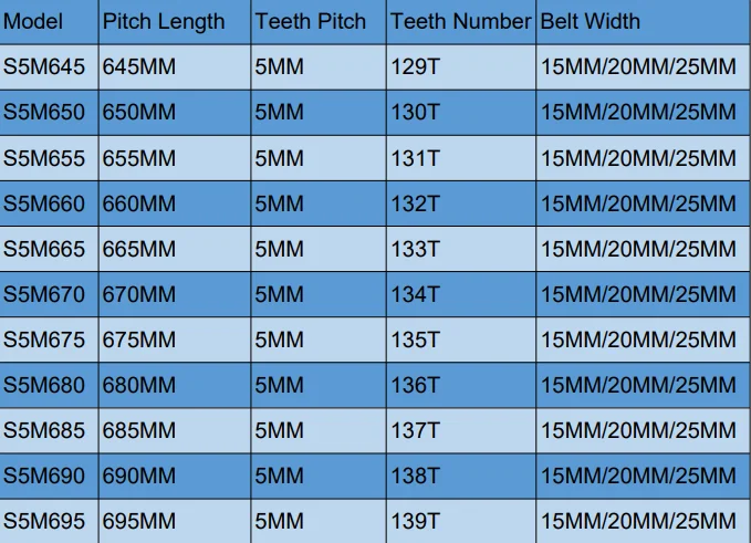 Model Number:S5M645/650/655/660/665/670/675/680/685/690/695mm