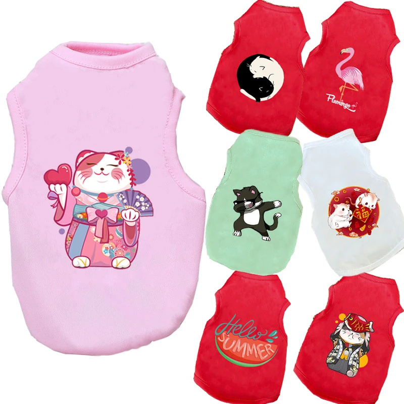Летняя одежда для собак, футболка для домашних животных, милый жилет для собак с принтом, для маленьких средних собак, аксессуары, жилет для щенков, кошек, хлопковая одежда, костюмы
