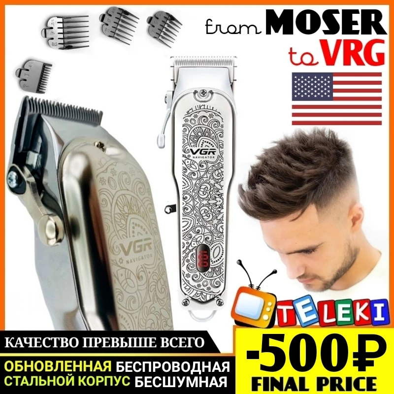 Прочная, удобная, долговечная обновленная беспроводная стальная профессиональная машинка для стрижки волос VGR Voyager v116 Professional оснащена ножами из нержавеющей стали. С её помощью можно быстро создать нужную причёску, причём эта модель эффективно справляется даже с жёсткими волосами. Классическая модель. В комплект поставки входит: машинка для стрижки, набор гребней (насадки), масло, щеточка для чистки ножей, инструкция и обновленная подарочная коробка. Обратите пожалуйста на это внимание! Ножницы и 2 дополнительных гребня в поставку не входят!