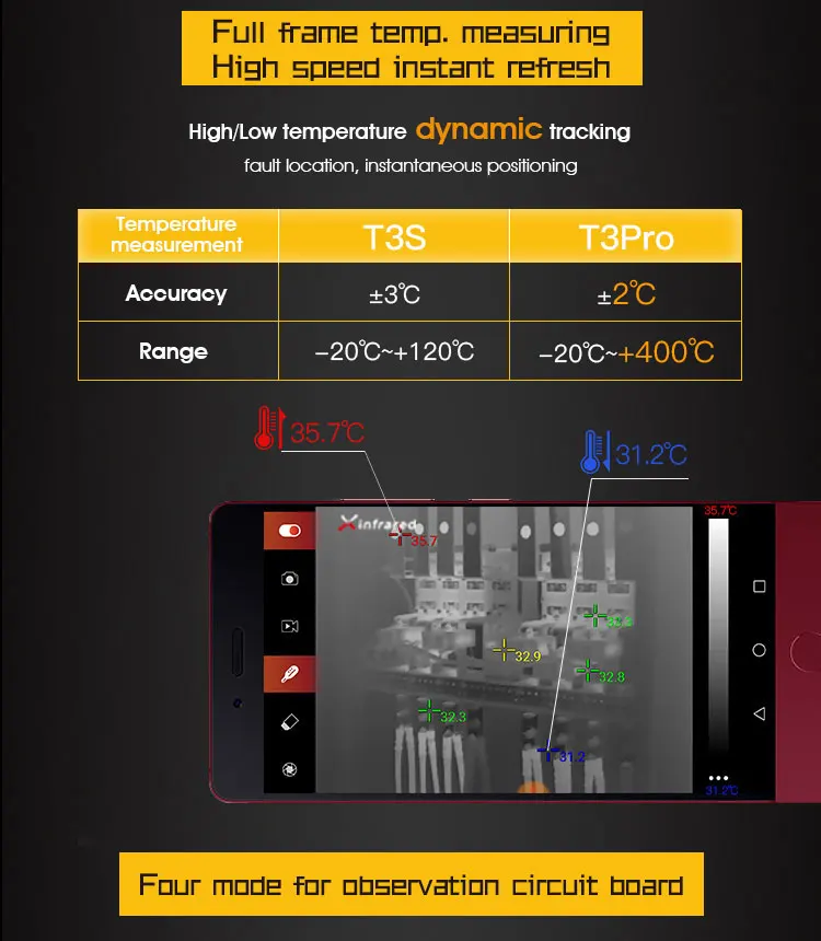 Поддержка Макс./мин./центр температуры. Дисплей с тремя точками статистики