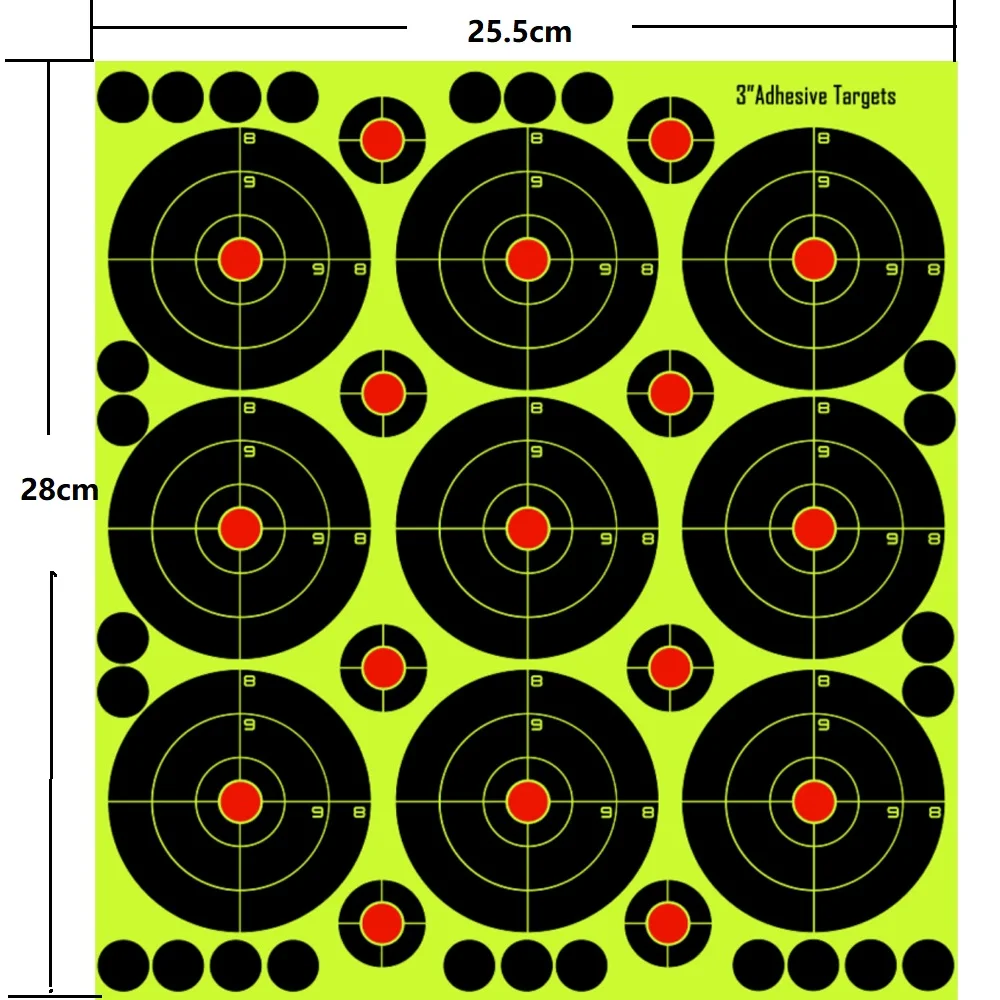 Клейкие цели прилипают практически ко всему. Каждая цель имеет несколько круглых пластырей для дополнительной съемки.