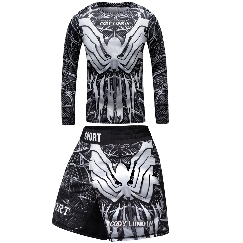 Детская футболка с принтом «джиу джитсу» + штаны, спортивные костюмы для ММА, одежда для мальчиков, Компрессионные спортивные костюмы, детские шорты «Муай Тай»