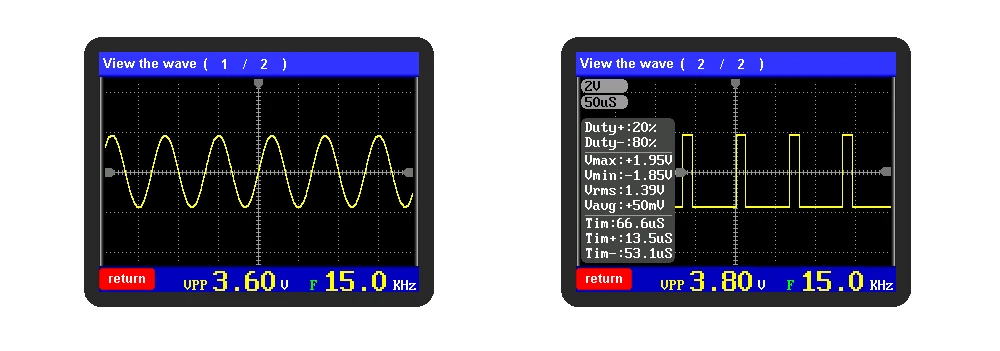 Дисплей в Высокое разрешение ЖК-дисплей экран оснащен 2,4 дюймов 320*240 разрешение. Чрезвычайно удобная и быстрая функция хранения сигналов, встроенная память объемом 16 Мб, Максимальная память 500 изображений формы волны. Мощный файловый менеджер waveform, поддержка просмотра эскизов, просмотра, просмотра деталей, переворачивания, удаления и других функций.
