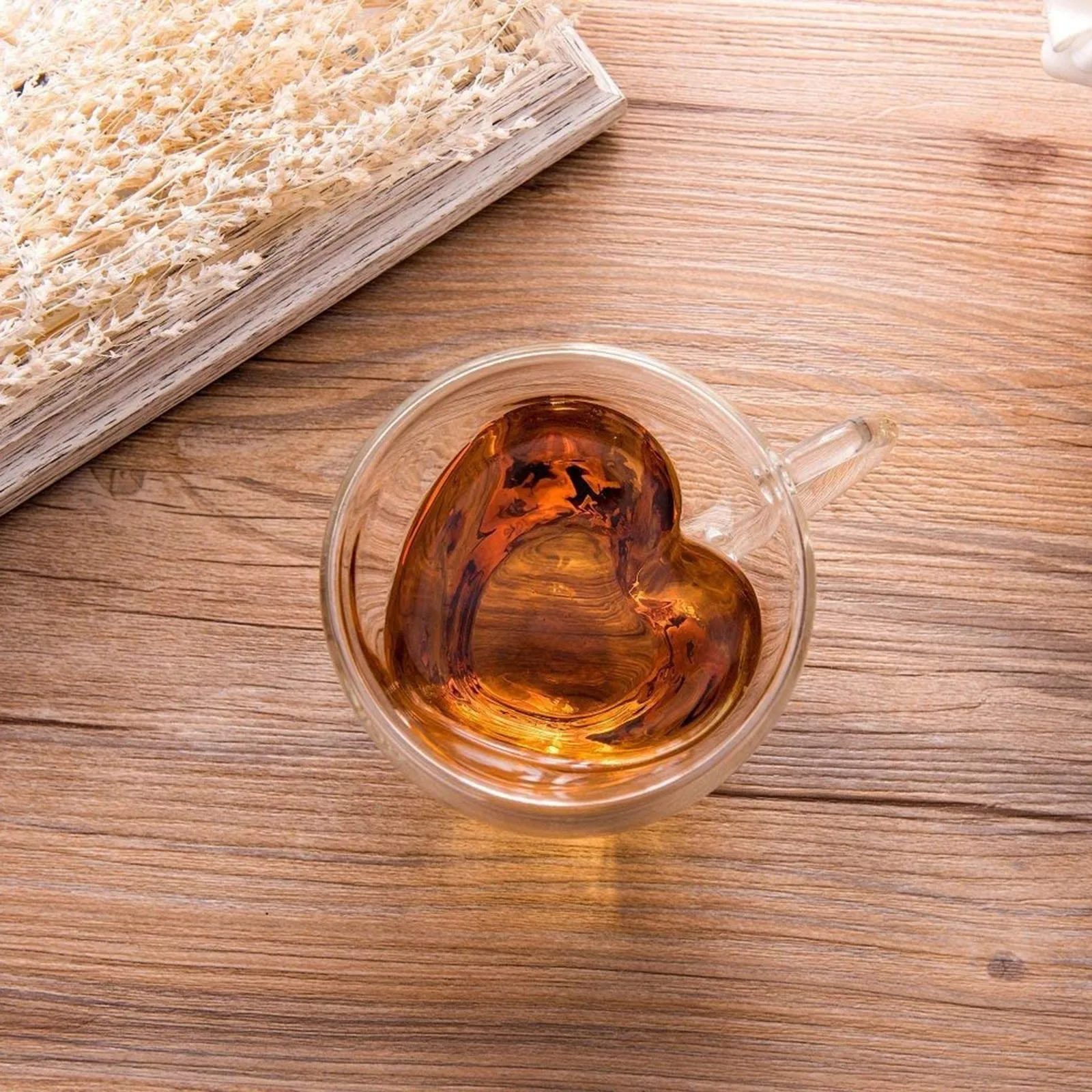 Сердце предотвращает ожогов мультфильм Прекрасный двойной стеклянный молочный кофе чашка с круглым ртом