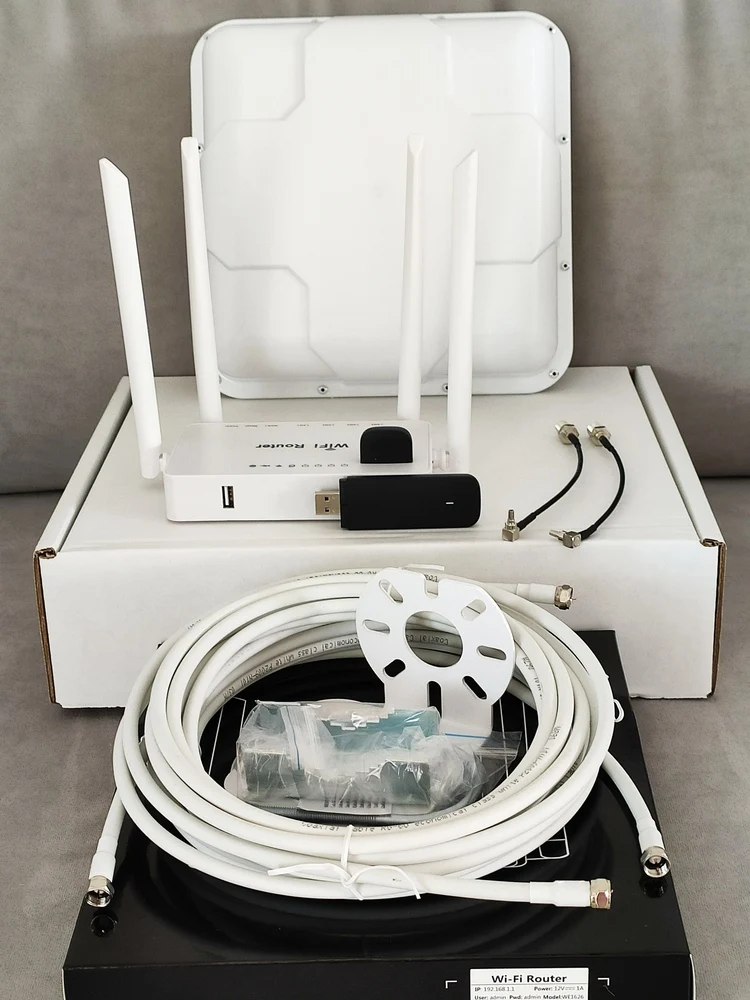 Комплект оборудования для самостоятельной установки интернета на даче, в частном доме, офисе, автосервисе и тд. Есть все, что нужно. Установка простая, не требует особых