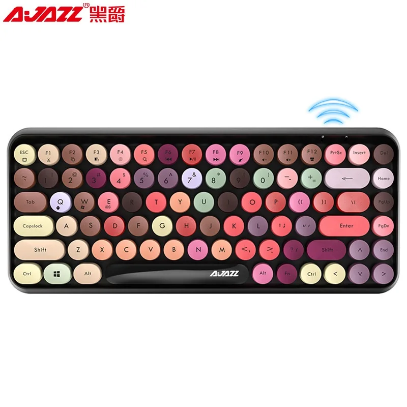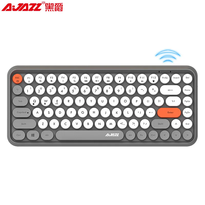 AJAZZ 308I Ретро Typewrite круглые клавиши Матовая Сенсорная Беспроводная bluetooth-совместимая игровая клавиатура для Win/iOS/Android многоцветная