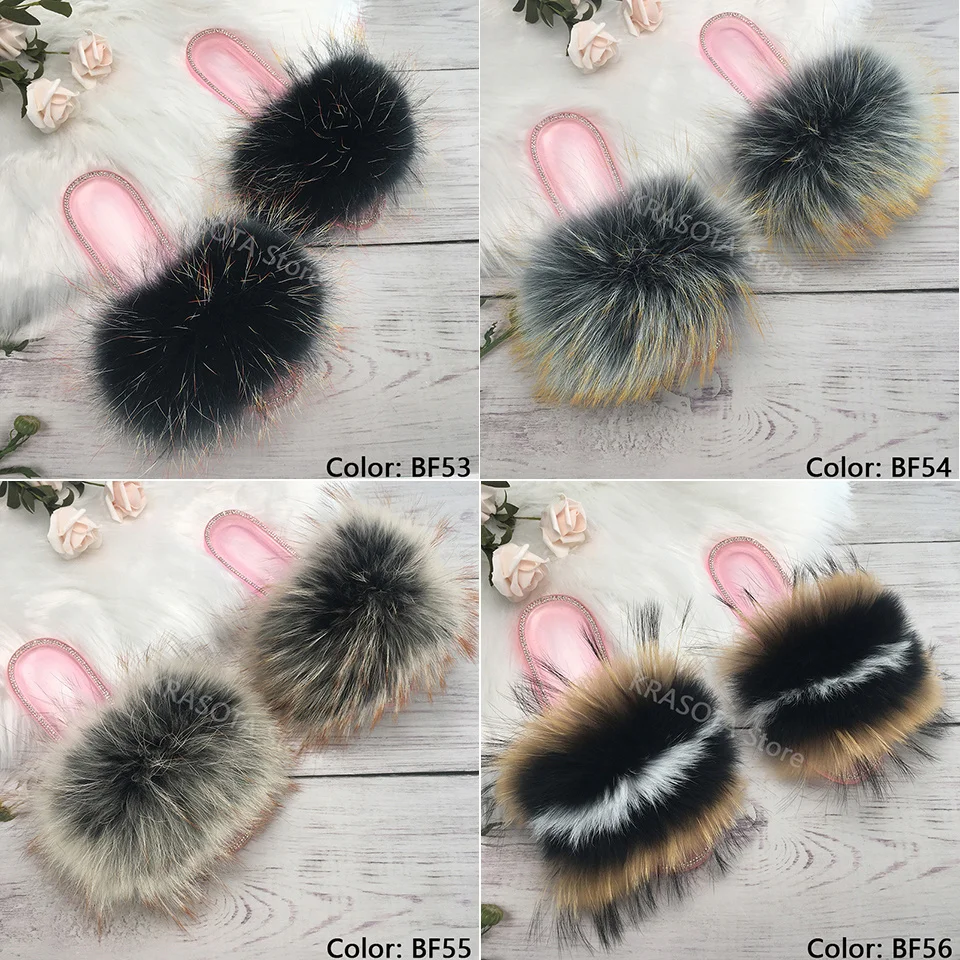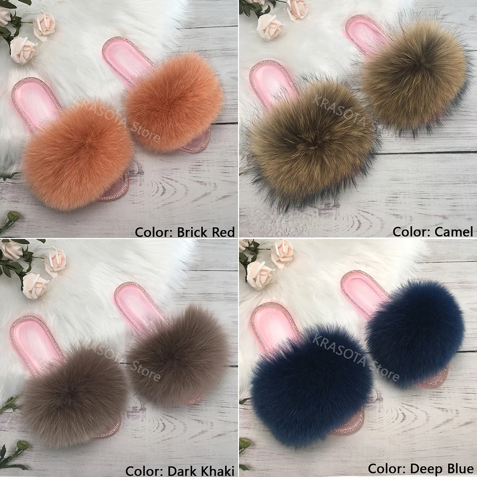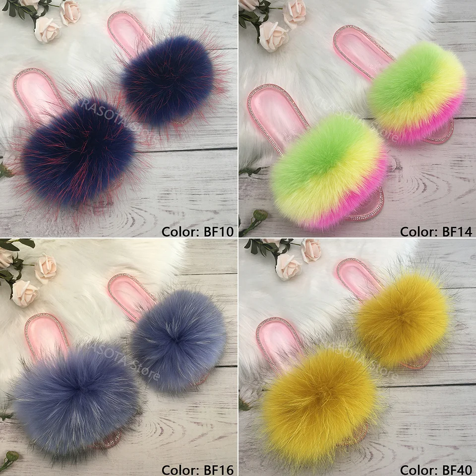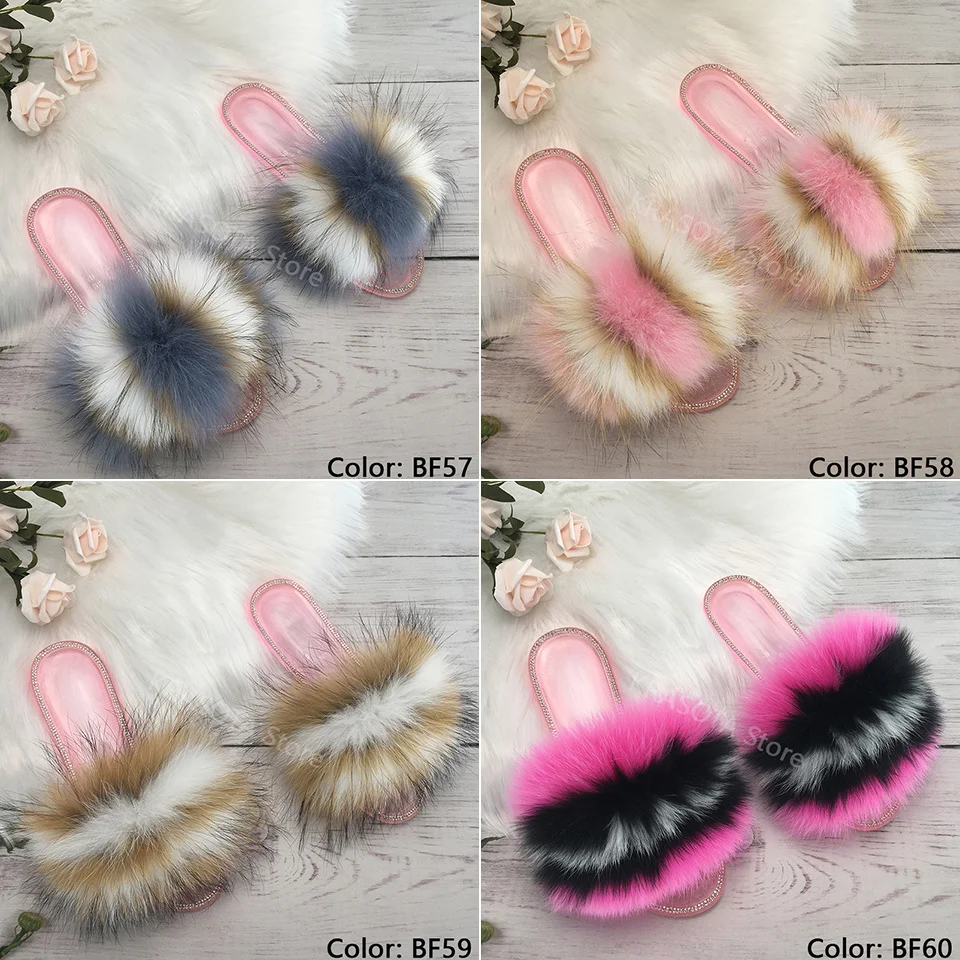 Женские дизайнерские Шлепанцы из натурального меха лисы; Вьетнамки из енота; Женские пушистые тапочки с украшением в виде кристаллов; Уличная обувь