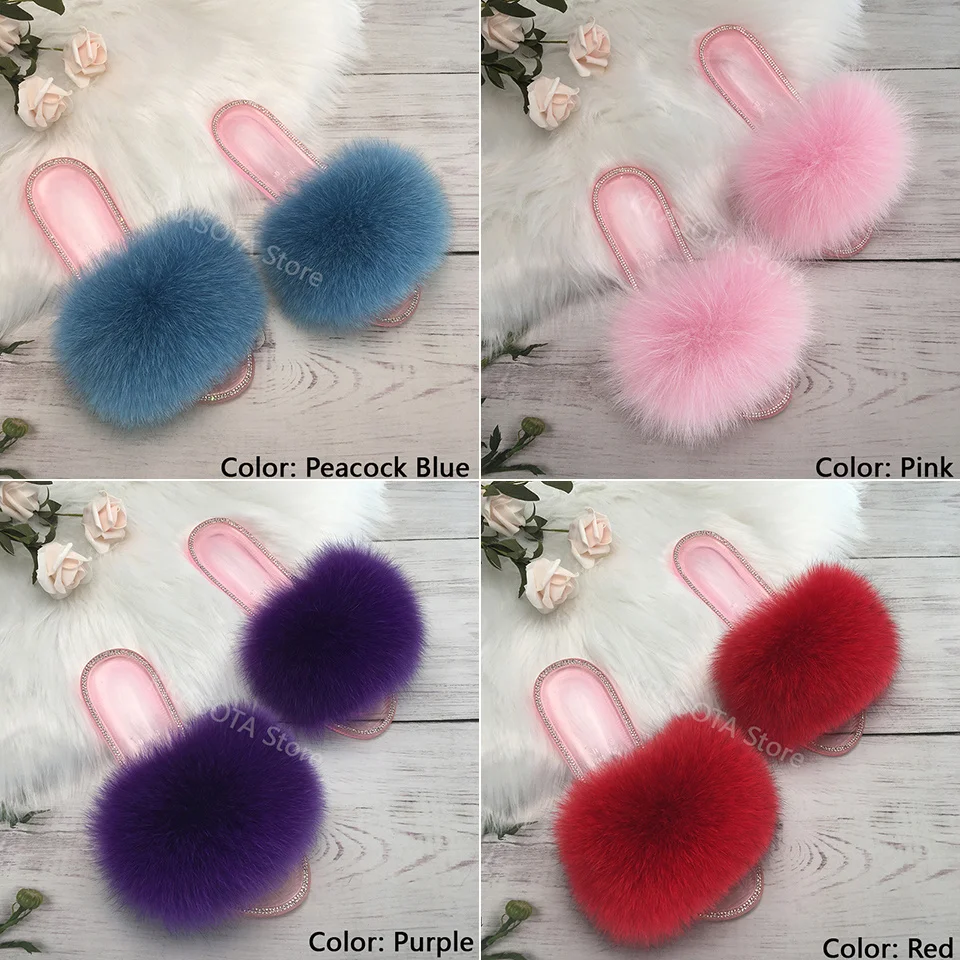 2021 шлепанцы с лисьим мехом; Шлепанцы с натуральным мехом; Вьетнамки; Повседневные летние сандалии; Дизайнерские шлепанцы с украшением в виде кристаллов