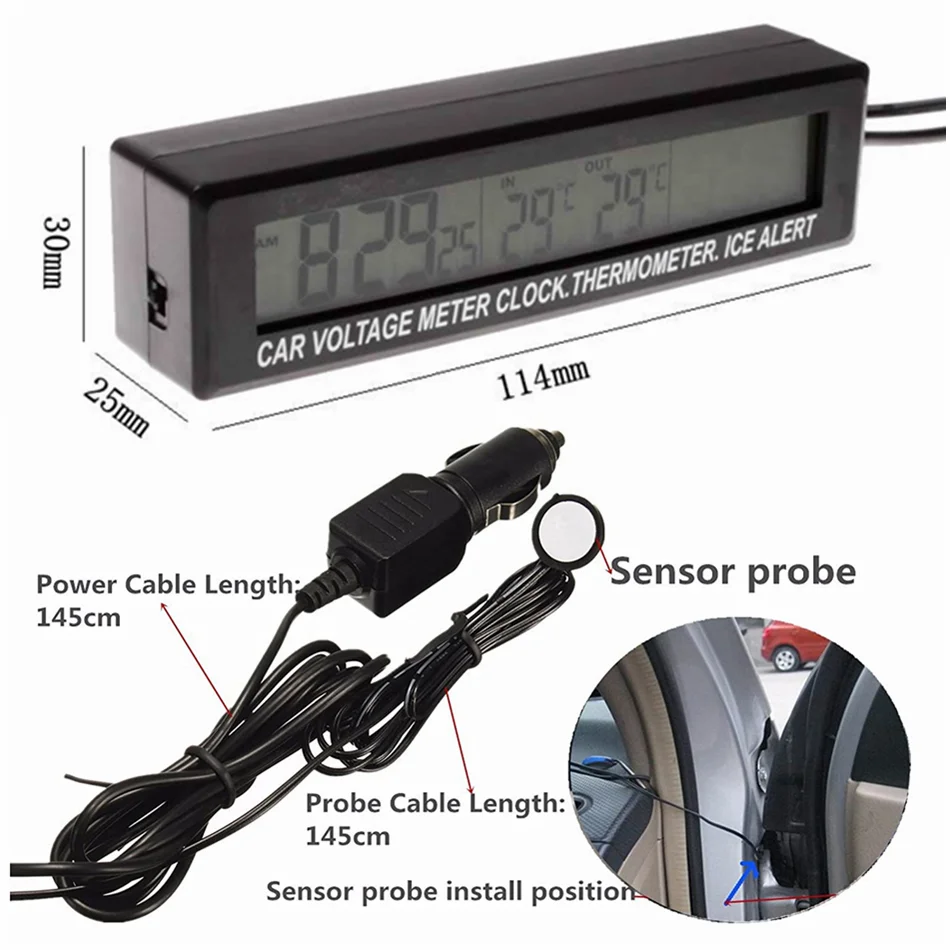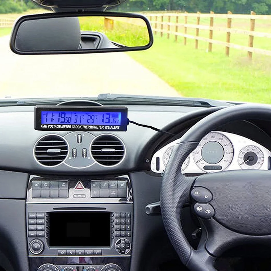 -Мини и умный дизайн: внутренний и наружный мини-Умный Цифровой Автомобильный термометр, автомобильное напряжение и автомобильные часы. Удобно для установки на авто. Идеально подходит для использования в качестве автомобильного температурного монитора.
