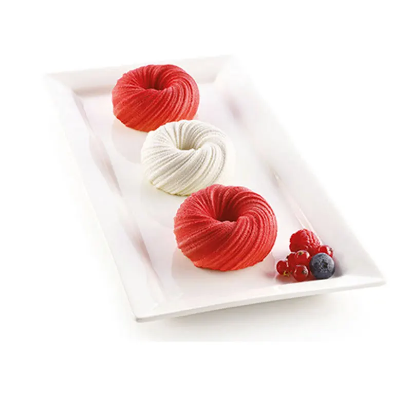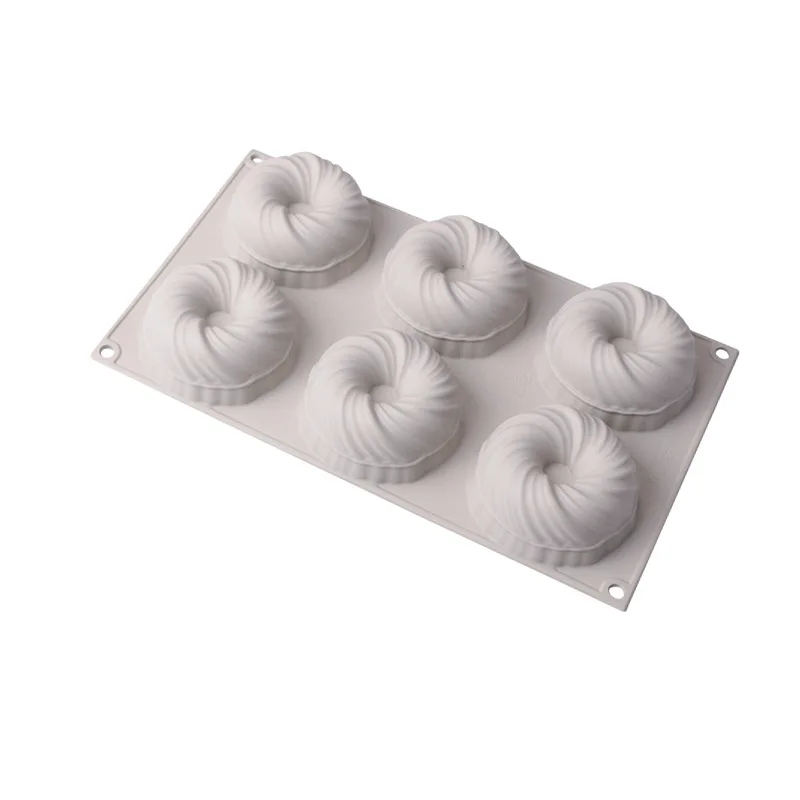 Размер: показан в фотографии Упаковка включает: 1*6 Полость спиральная силиконовая форма для торта без запаха, нетоксичный, Анти-пыль, прочный, непроницаемый, легко моется. Отлично подходит для сырных пирожных для муссов и десертов, шифоновых шоколадных коричневых и многого другого.