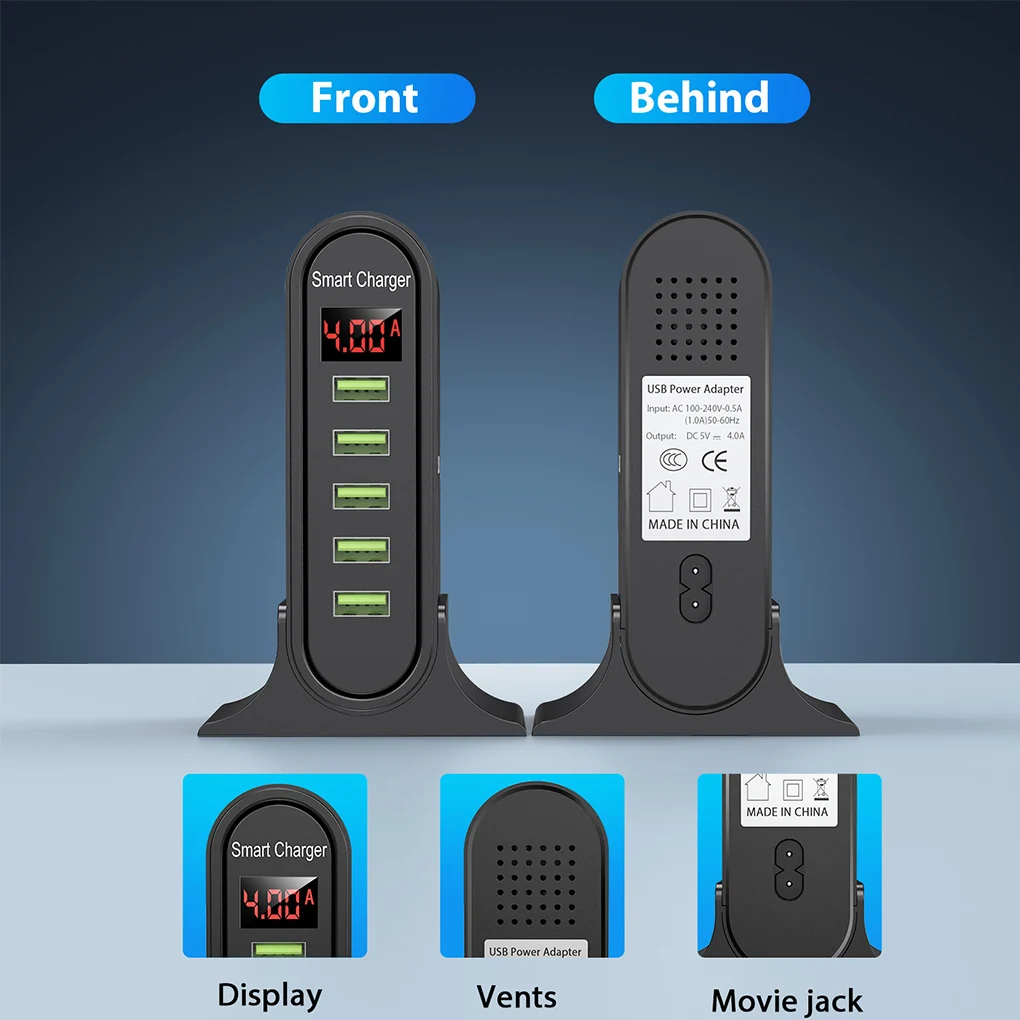 Эта зарядная станция USB может заряжать 5 устройств одновременно, экономя время для вас, вы можете заказать в соответствии с вашими потребностями.