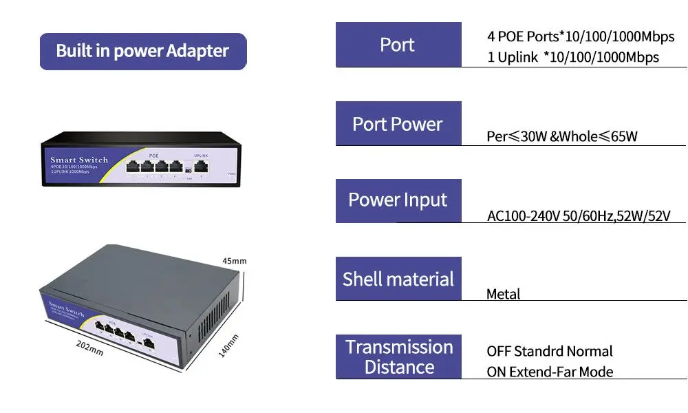 5. Коммутатор PoE идеально подходит для питания устройств PoE, таких как ip-камеры, точка доступа WLAN, ip-телефоны, офисные системы контроля доступа