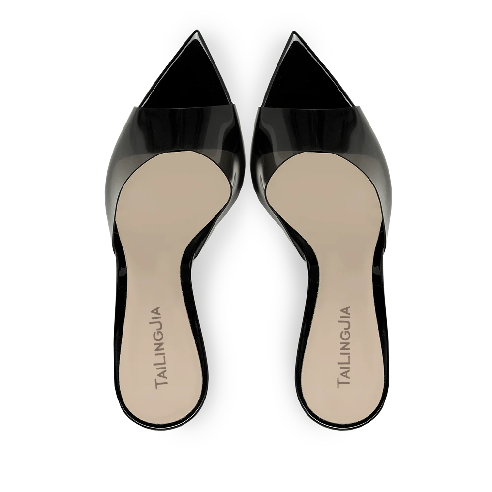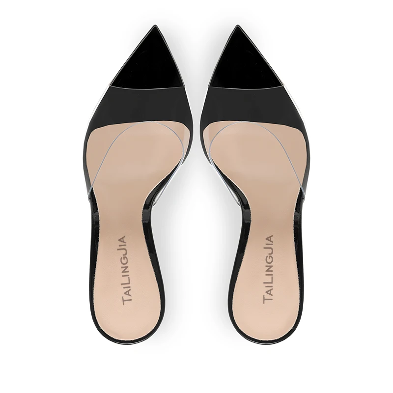 Модные прозрачные босоножки с острым носком; Коллекция 2022 года; Женские розовые черные шлепанцы на высоком каблуке; Летняя обувь; Женские босоножки; Прозрачная женская обувь