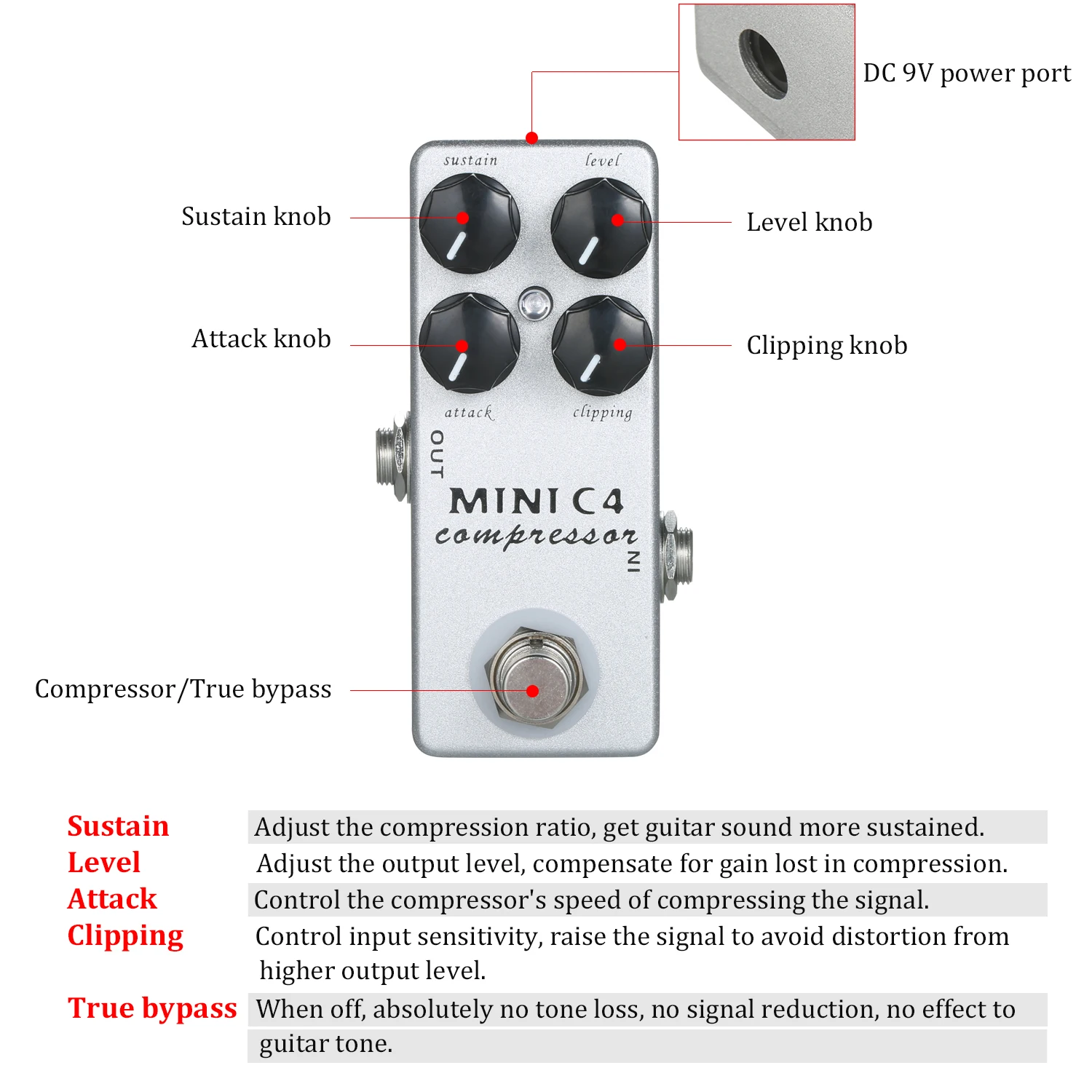 Компактная Компрессорная педаль гитарных эффектов, карманный размер, легкий вес, удобно в любом месте.