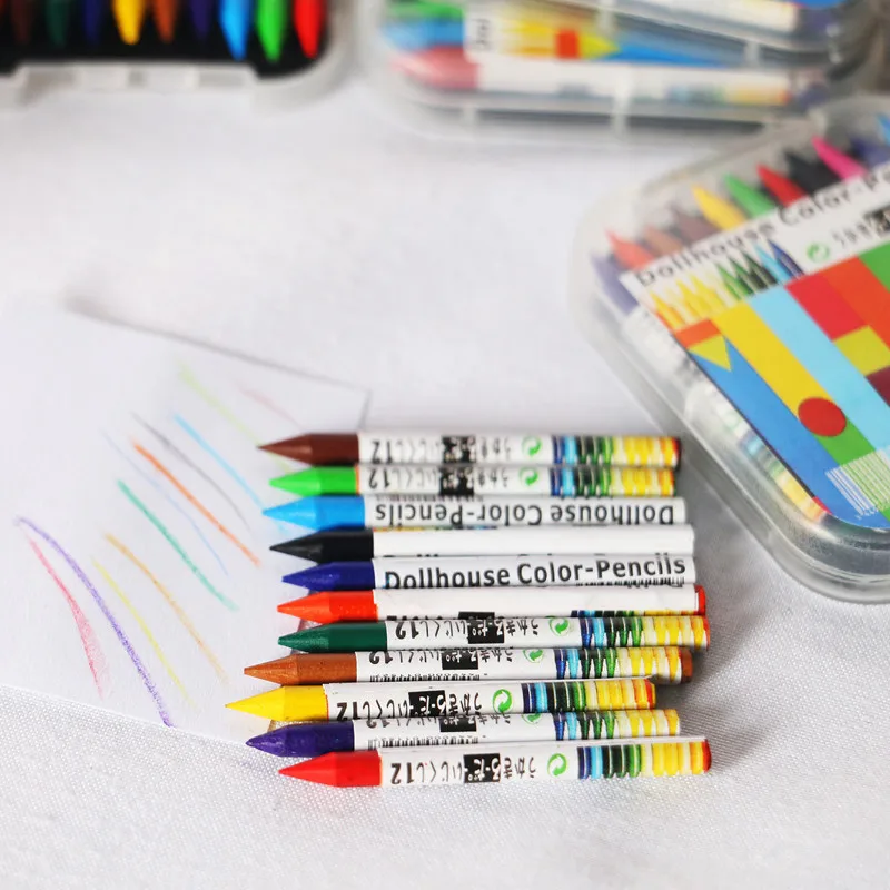 Миниатюрный Кукольный домик, 12 цветов, в коробке, цветные мелки, игровая модель для куклы-Барби, миниатюрные ролевые игрушки, аксессуары