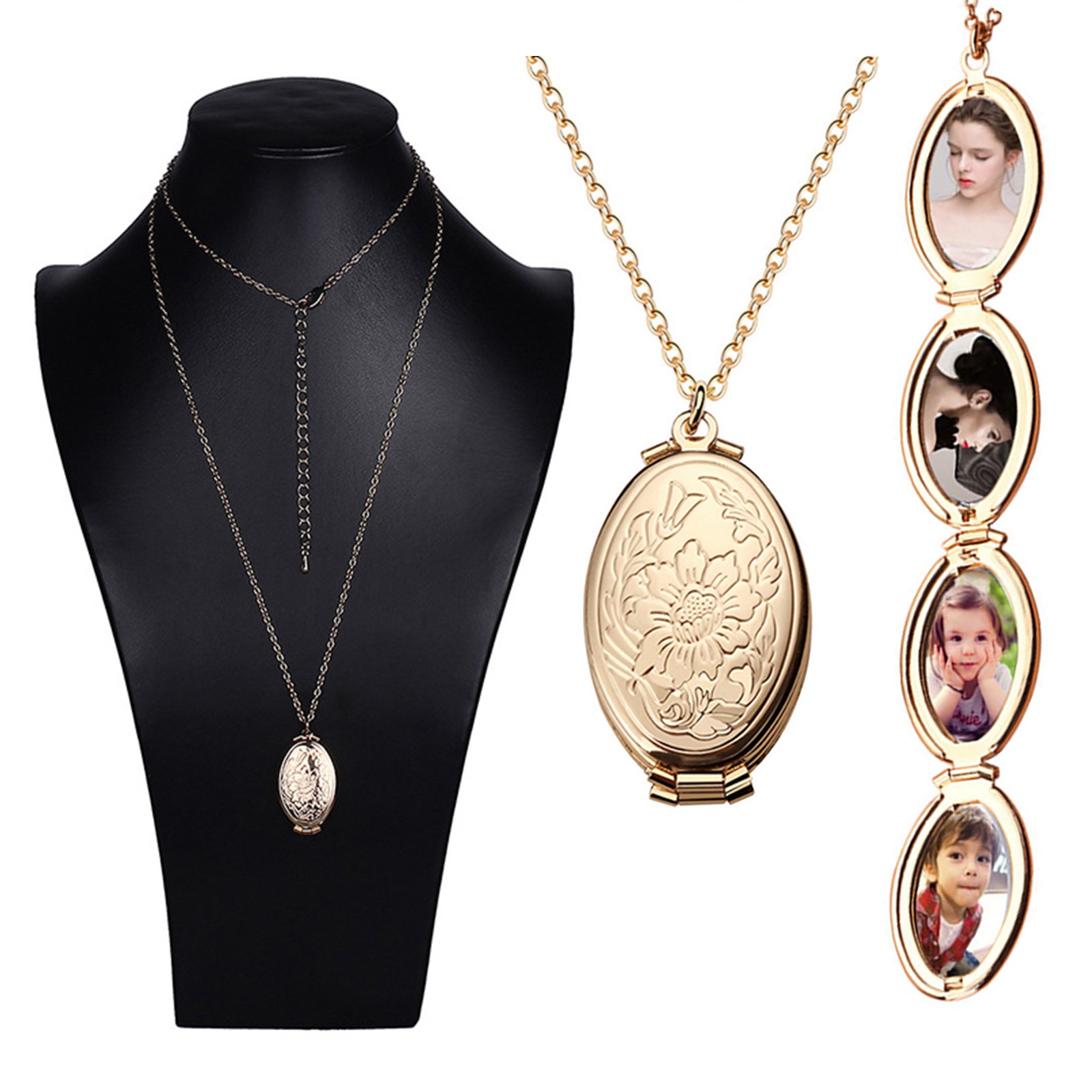 Гальванический Овальный медальон 4 слота кулон-фоторамка ожерелье ювелирные изделия подарок твердый