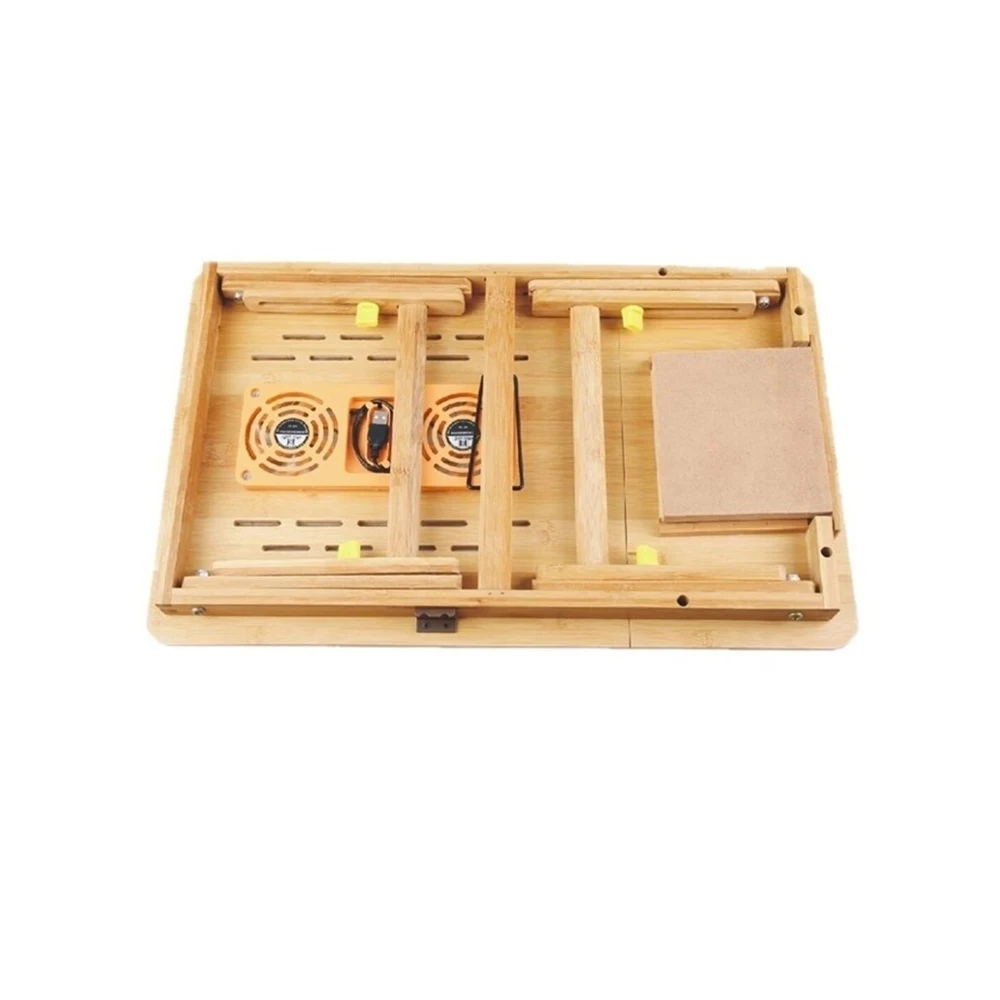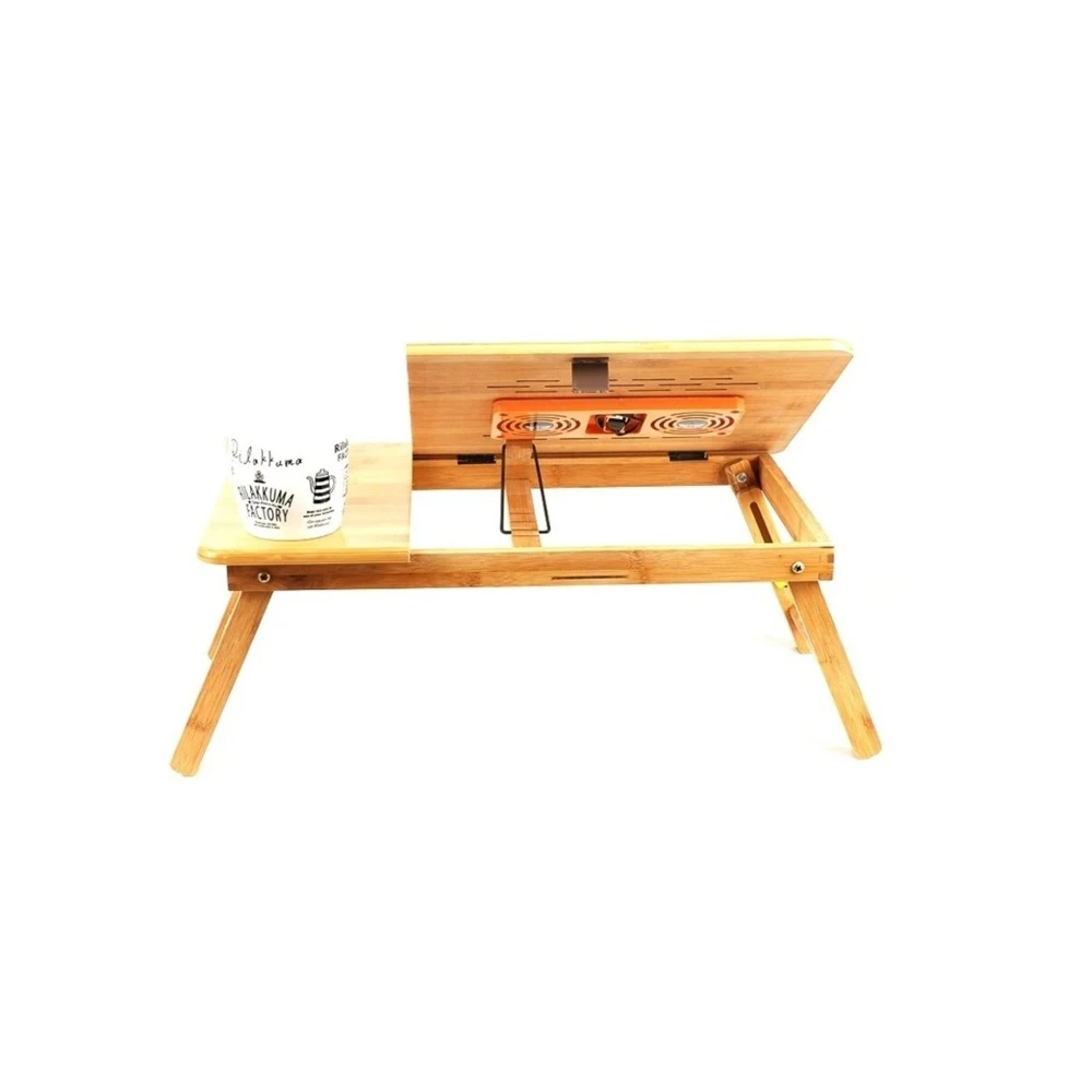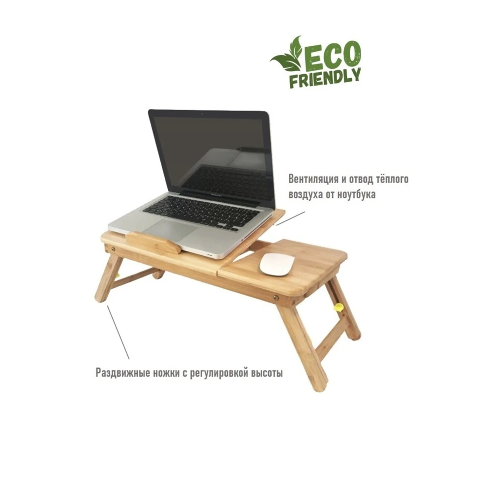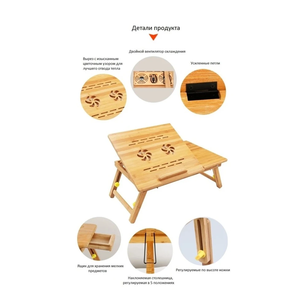 Столик Zitrek из бамбука складной со встроенным вентилятором. Подойдет для ноутбука или планшета, а так же для принятия пищи в постели, для этого имеется подстаканник и ящик для мелких предметов. Столик выполнен из экологически чистого и прочного материала. Телескопические ножки позволяют регулировать его по высоте, а специальные отверстия на столешнице позволяют осуществлять вентиляцию и отвод тёплого воздуха от ноутбука или планшета.