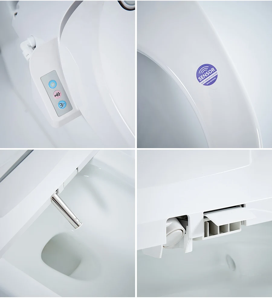 1. Эта крышка для унитаза подходит для 90% туалетов, с длинным и коротким размером. Два стиля: пульт дистанционного управления и боковая панель.