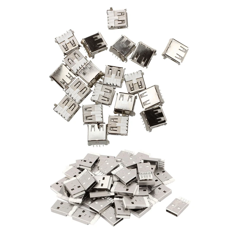 75 шт. разъем: 55 шт DIY USB 2,0 Тип припоя 4 Pin типа «папа» разъем Jack & 20 шт. флеш-накопитель USB с гнездовым Тип 4-контактный DIP Ri
