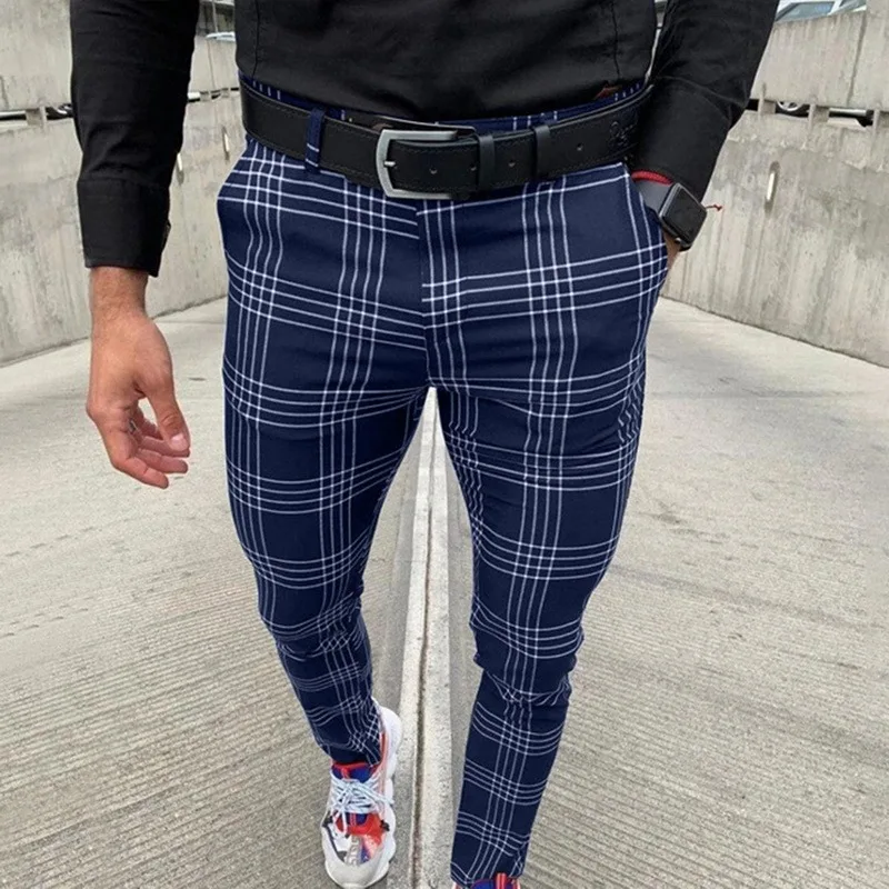 Особенности: мужские брюки в клетку; Обтягивающие брюки; Мужская одежда; Брюки-карандаш; Уличная одежда; Повседневные брюки