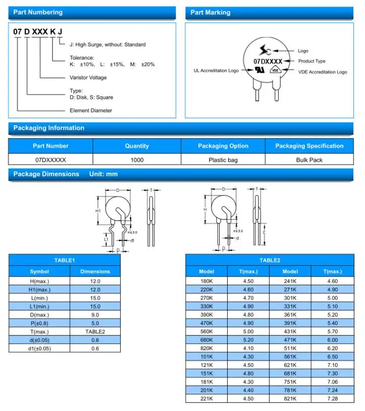 Варистор 5D471K 10D270K 14D471K 10D330K 7D470K 10D390K 20D201K 7D391K 10D470K 20D391K 7D431K 10D241K 20D471K 7D471K 10D391K 20D102K 10D431K 10D471K 32D431K 10D561K