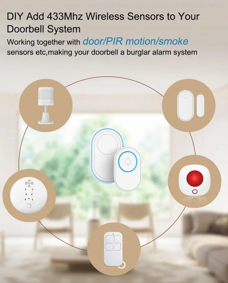 ? Многофункциональный беспроводной дверной звонок Wi-Fi-не только функция дверного звонка, но и одна клавиша SOS. DIY добавлены 433 МГЦ беспроводные устройства для формирования домашней системы противоугонной и аварийной сигнализации. В то же время, он также имеет функцию будильника, может установить время будильника удаленно, который используется, чтобы напомнить пожилым людям принимать лекарства или детей, чтобы вставать. Все это можно реализовать в приложении. Приложение также может проверить запись будильника в любое время