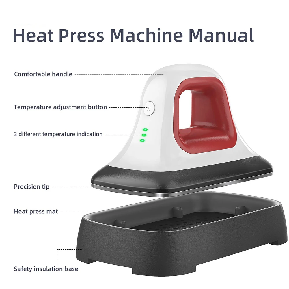 Быстрое нагревание и передача, может нагреваться в течение 3-5 секунд. Установите предпочтительный уровень нагрева, когда светильник индикатора станет зеленым, равномерно нанесите мягкое давление во время глажки в течение 20-30 с, он выходит с идеальным результатом DIY. Идеально подходит для HTV передачи винил, блеск, бумага для переноса и т. Д.