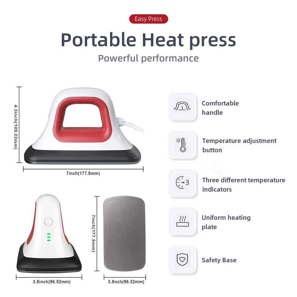 Удобный размер можно использовать в любом месте, идеально подходит для персонализированных узоров на поверхности футболок, принтов, одежды, шляп, сумок, масок, носков и т. д. Наслаждайтесь веселым изготовлением поделок с помощью теплового пресса