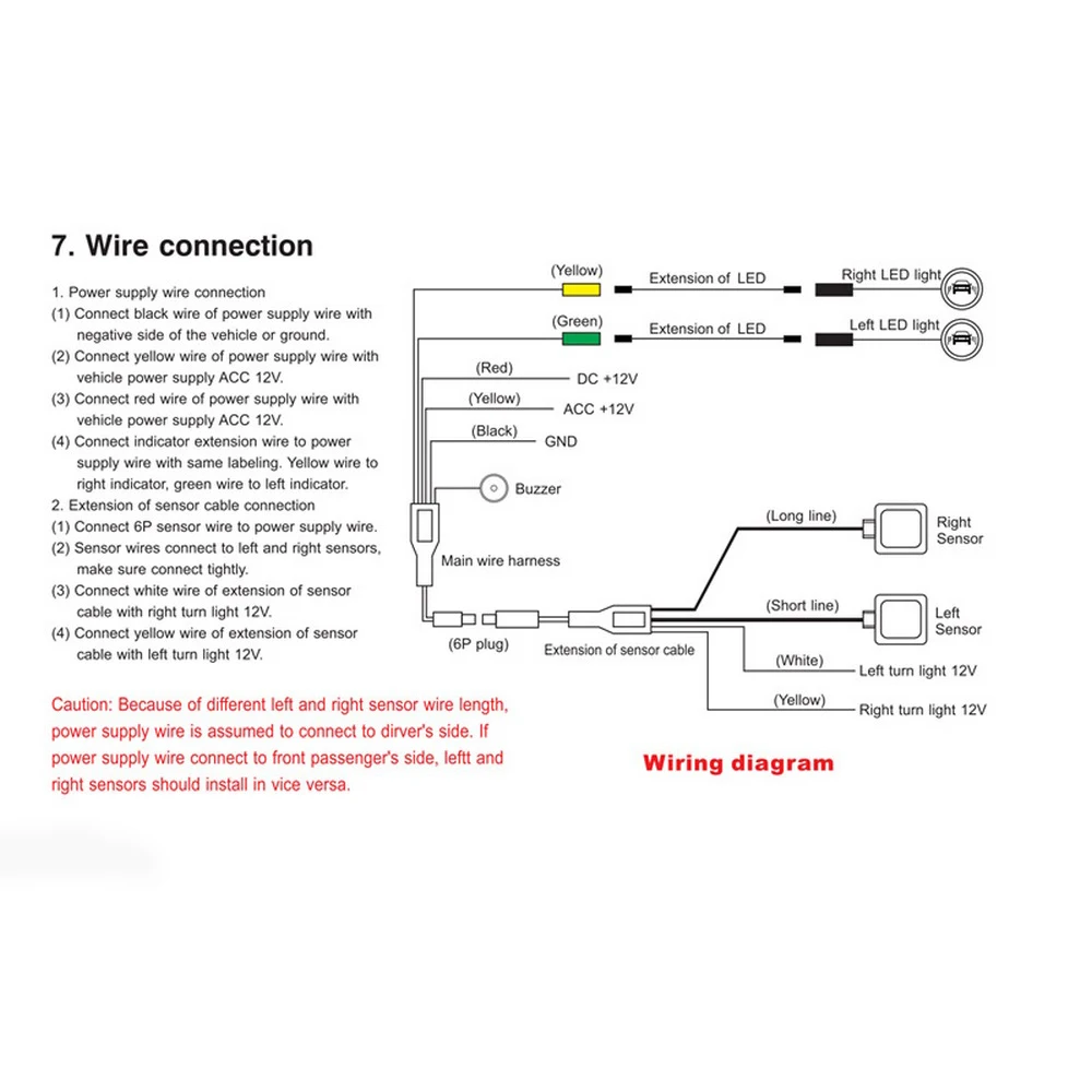 3. Система выступает в качестве блока управления (светодиодный компьютер), двух микроволновых радиолокационных датчиков, двух слепых точечных мониторов (или светодиодный индикатор), зуммера и жгута проводов, И идеальное сочетание микроволновых радиолокационных датчиков и компьютеров.