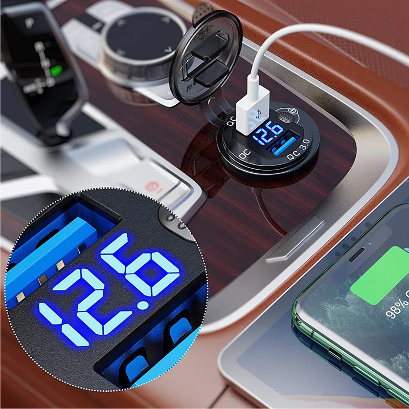 Светодиодный цифровой вольтметр, защитная крышка USB и выключатель питания;