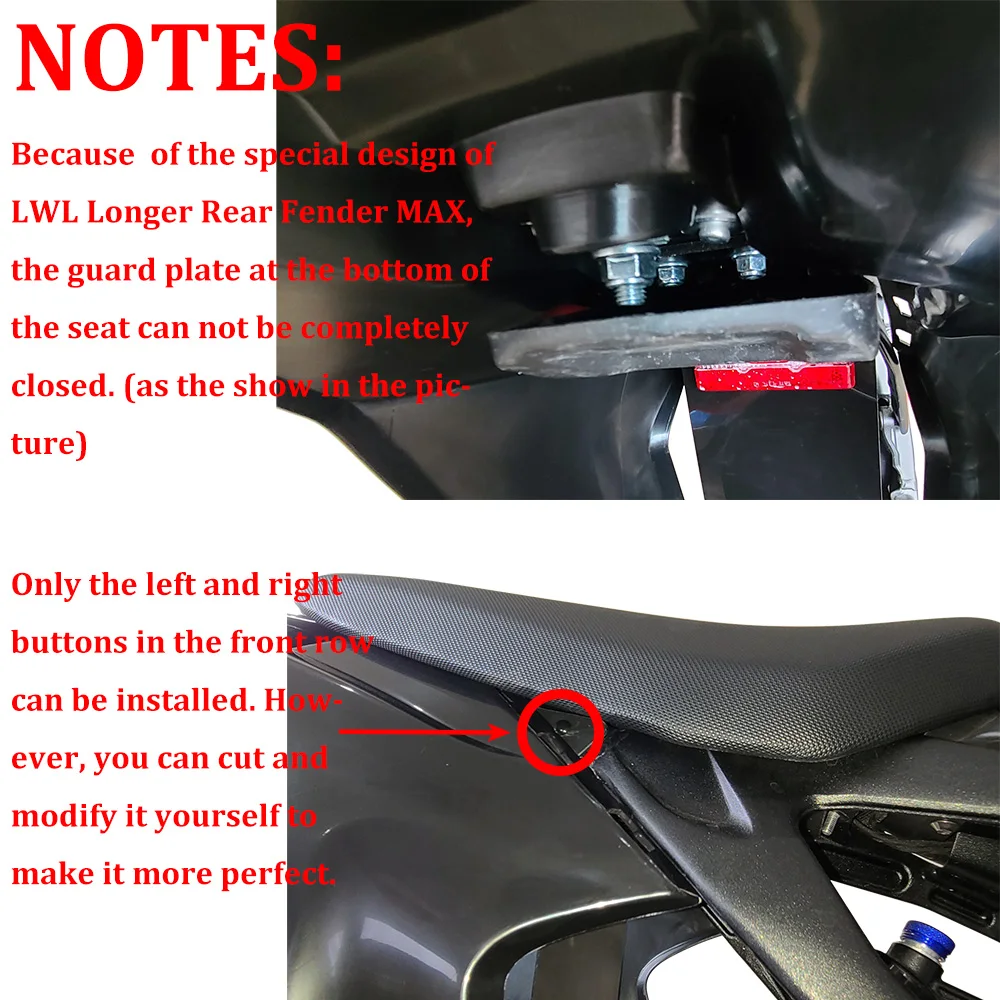 Из-за особой конструкции LWL длиннее заднее крыло Макс, защитная пластина в нижней части сиденья не может быть полностью закрыта. (как показано на рисунке)