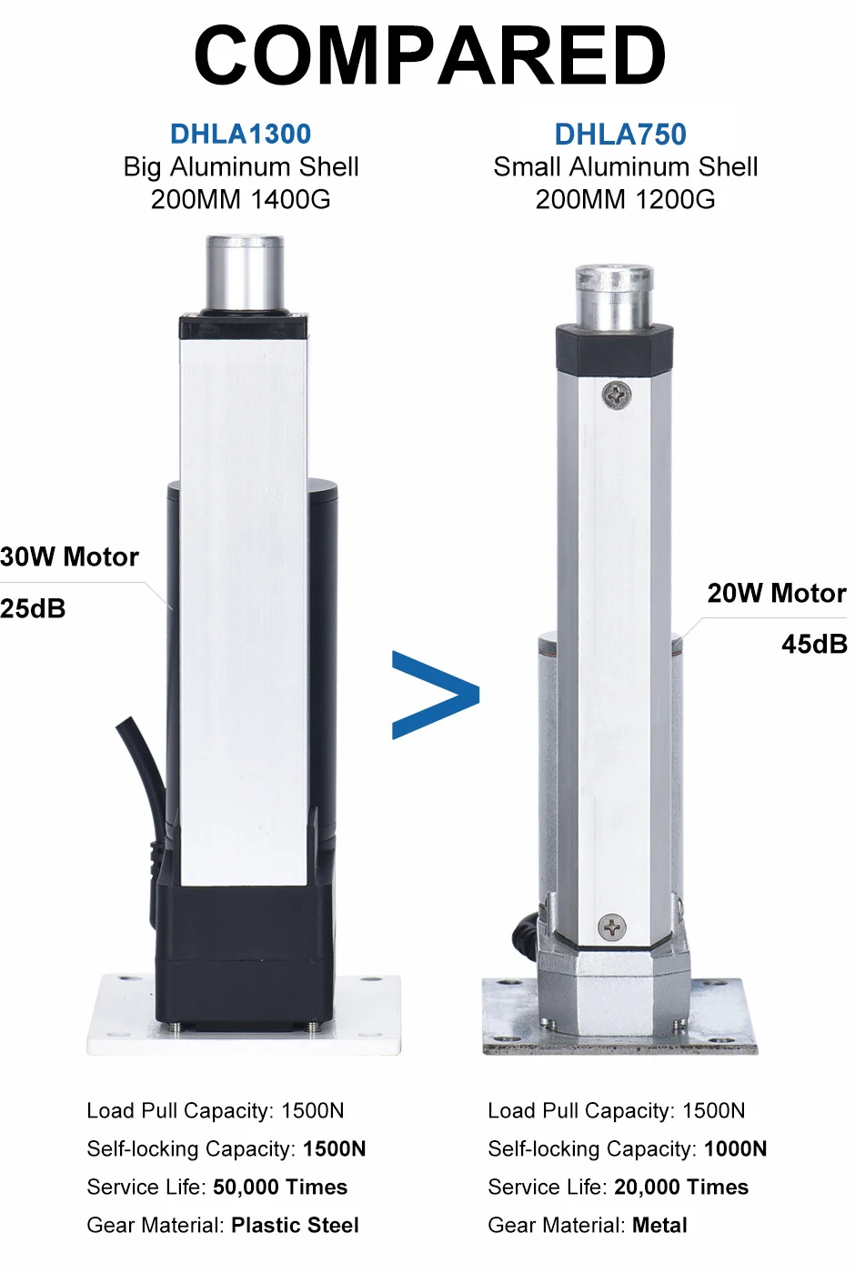 Пластиковая шестерня: тихий звук; Пластиковая сталь обладает хорошей прочностью и не ломается из-за перегрева;Пластиковые стальные шестерни используются все больше и больше мест, например, медицинское оборудование необходимо заменить пластиковыми стальными шестернямиСравнение электрического линейного привода DC12V