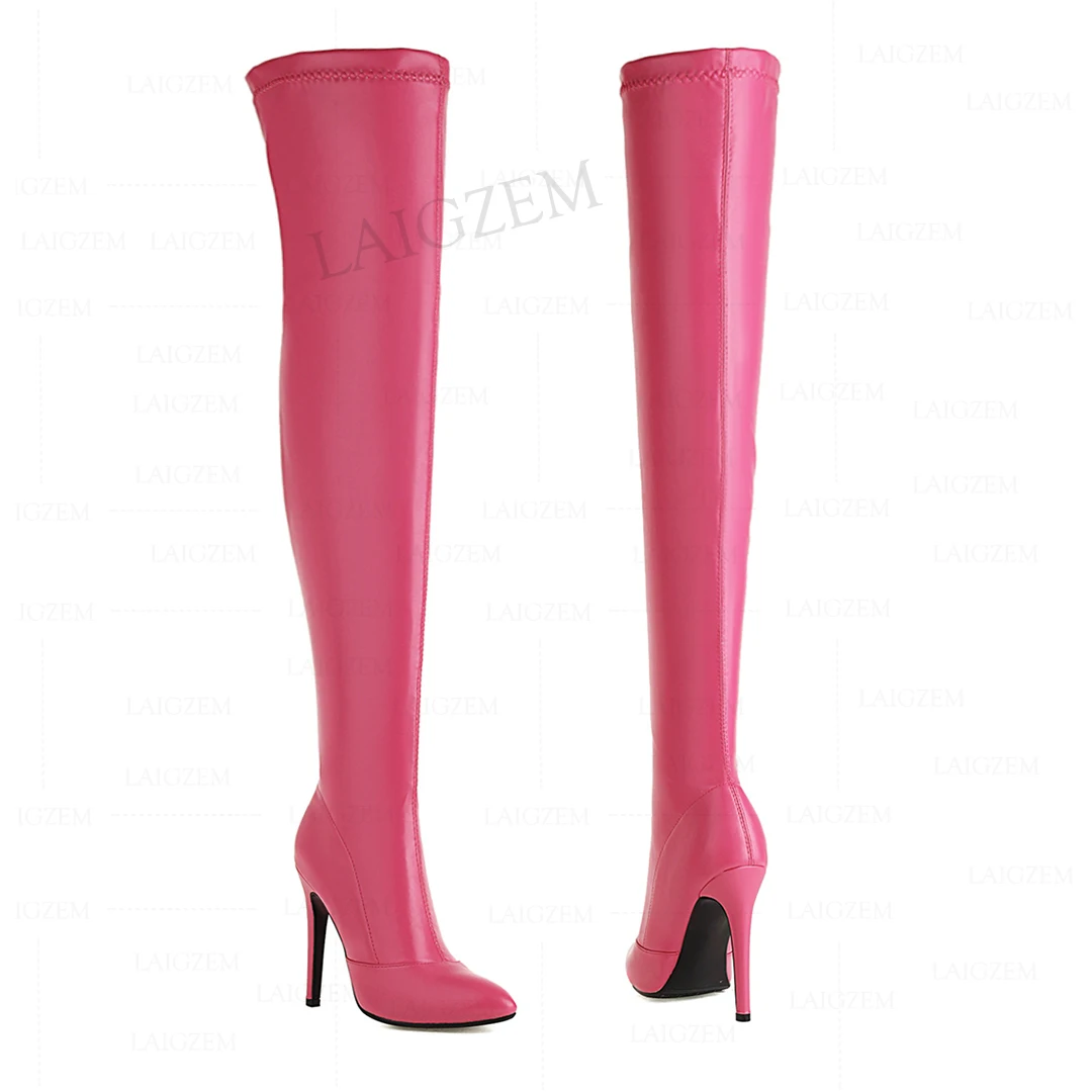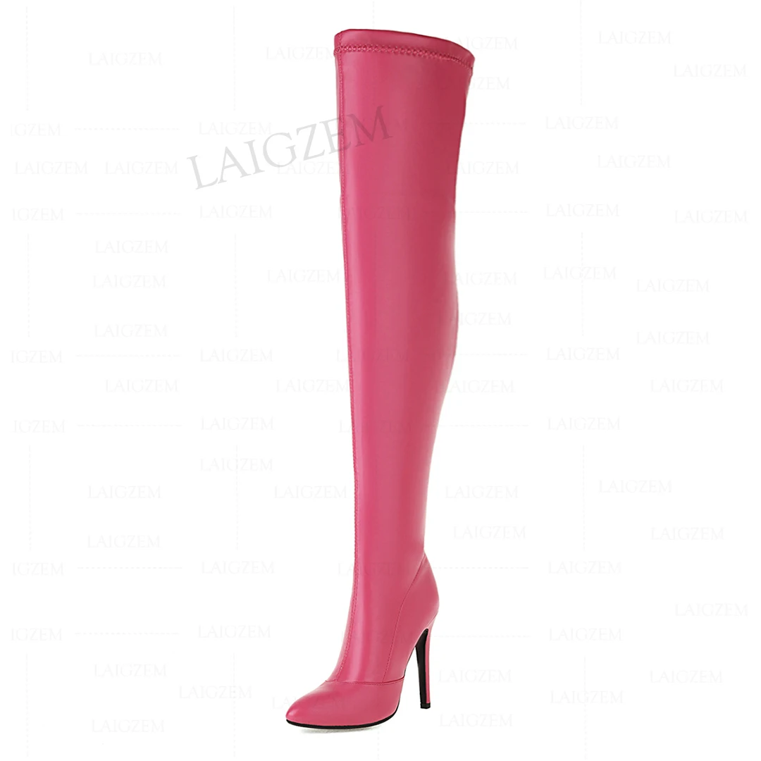Женские сапоги-ботфорты на каблуке-шпильке, с острым носком, большие размеры 41, 45, 49