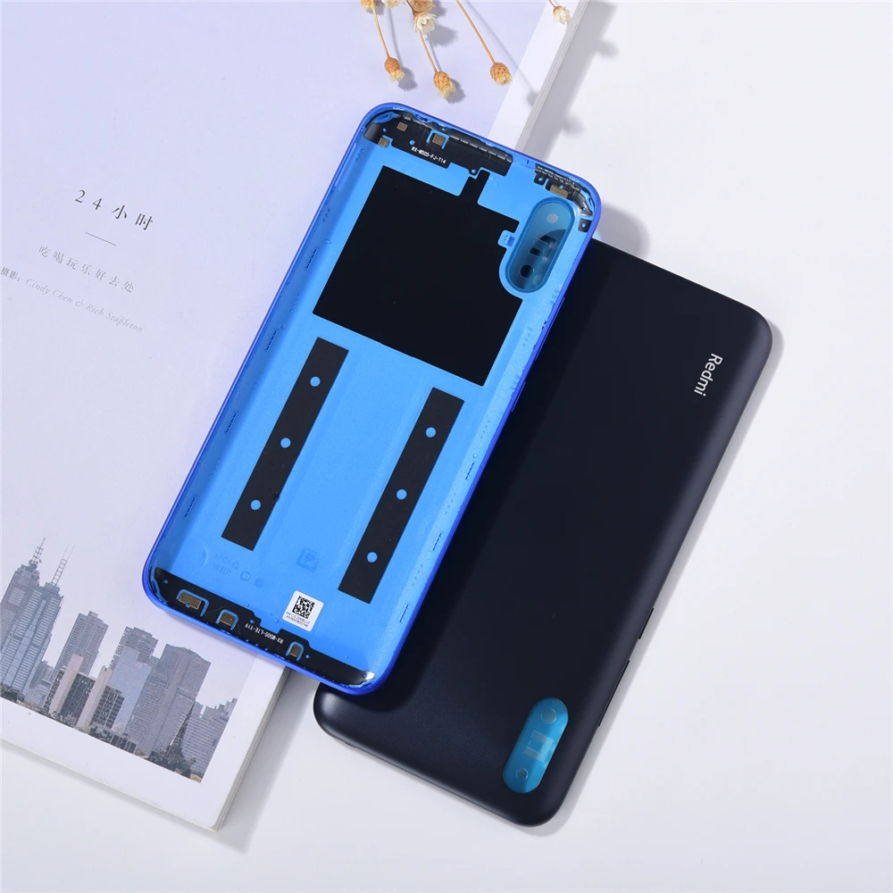 Новый оригинальный чехол для Xiaomi Redmi 9A, задняя крышка для батареи, пластиковый корпус для задней двери + боковые кнопки, высококачественные запасные части для панели