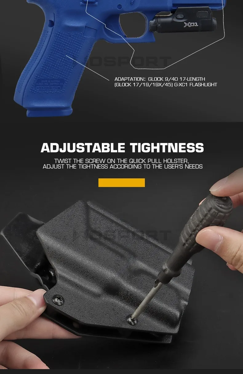 1. Этот чехол предназначен для Glock 17 19 19x45 с монтажным фонариком XC1. Специальное пространство для фонарика,