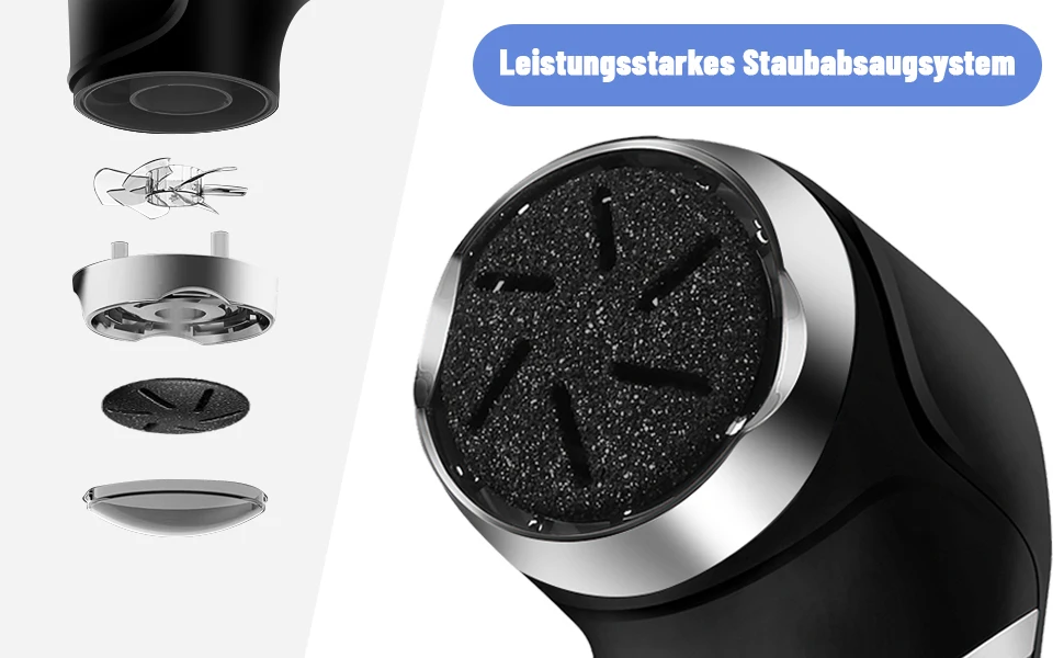 The new improved loading foot file 2021 with rotary planetary gear design, can more effectively remove dead skin over a larger area. The extra suction function can absorb fine dust and peeling skin, and the waterproof function makes cleaning more convenient. With less money, you can enjoy salon-level treatments with your family and friends. Make your foot care experience safer, more efficient and more professional.