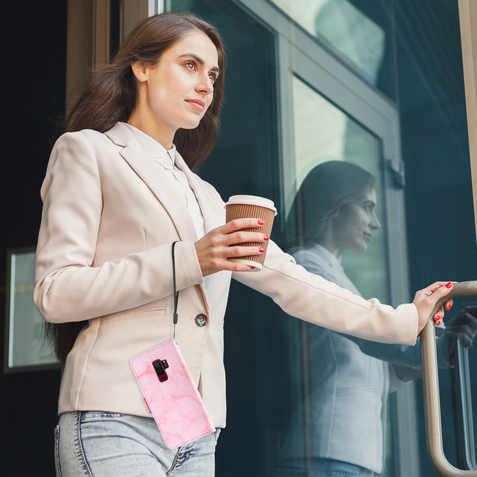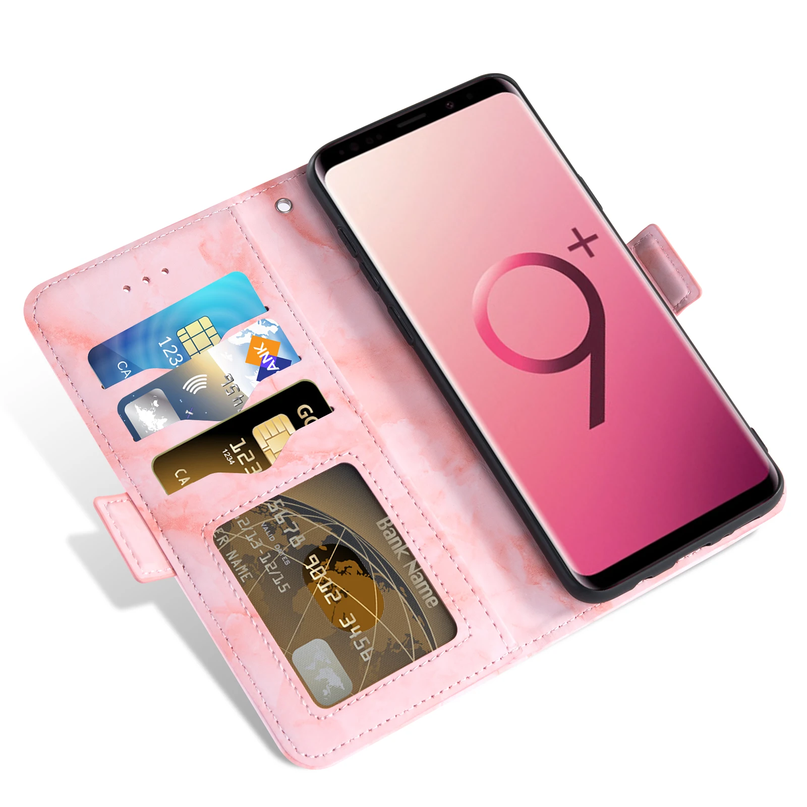 Высококачественный кожаный чехол-кошелек с мраморной текстурой;