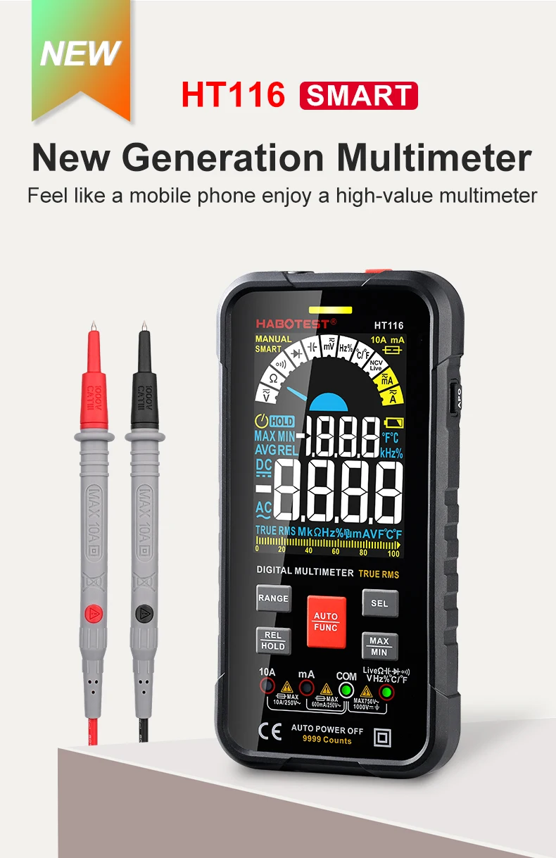 Тестер транзисторов мультиметр Цифровой Профессиональный умный автомобильный NCV 1000V AC DC Hz Ohm измеритель емкостной температуры HABOTEST