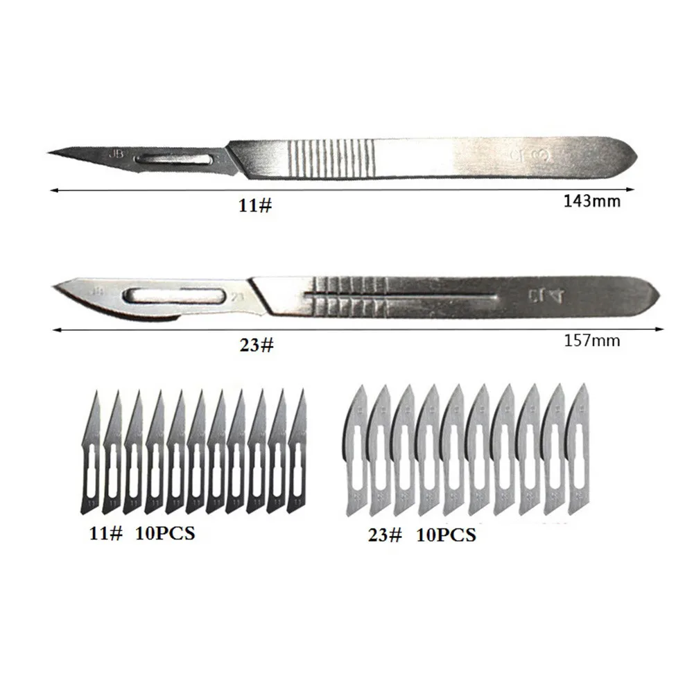 1 Скальпель с ручкой + 10 скальпельных лезвий (#11 или #23)