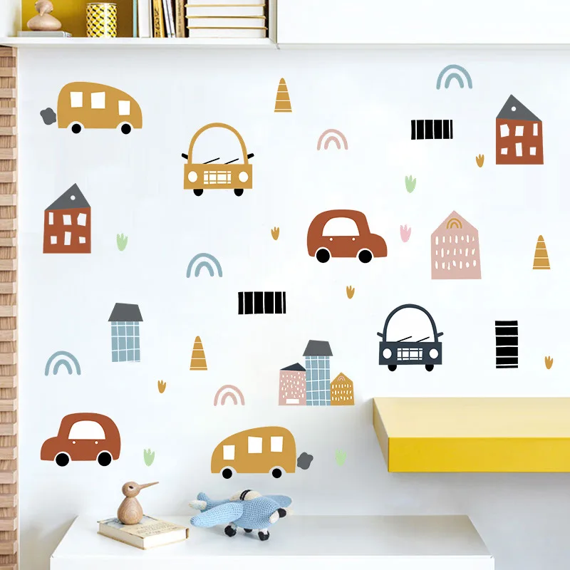 Мультяшные машинки, наклейки на стене дома для детских комнат, детская игровая комната, спальня, Настенный декор, съемное искусство, настенная наклейка, плакат