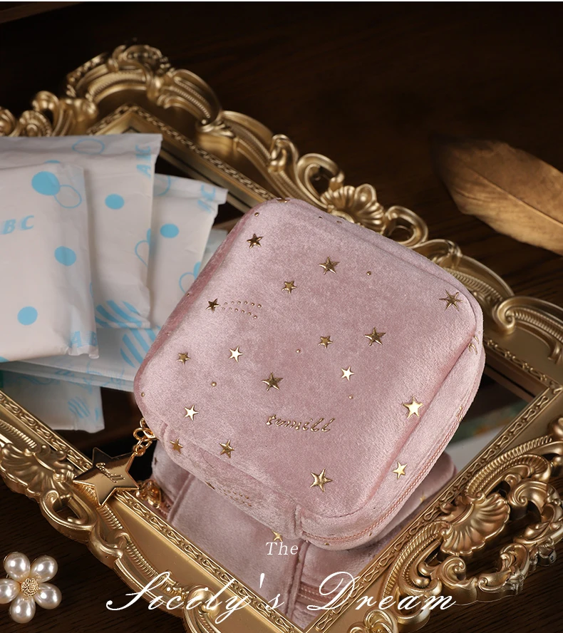Женская гигиеническая прокладка для салфеток, сумка для хранения, милый бархатный макияж, губная помада, органайзер, тампон, чехол, переносная дорожная сумка для макияжа