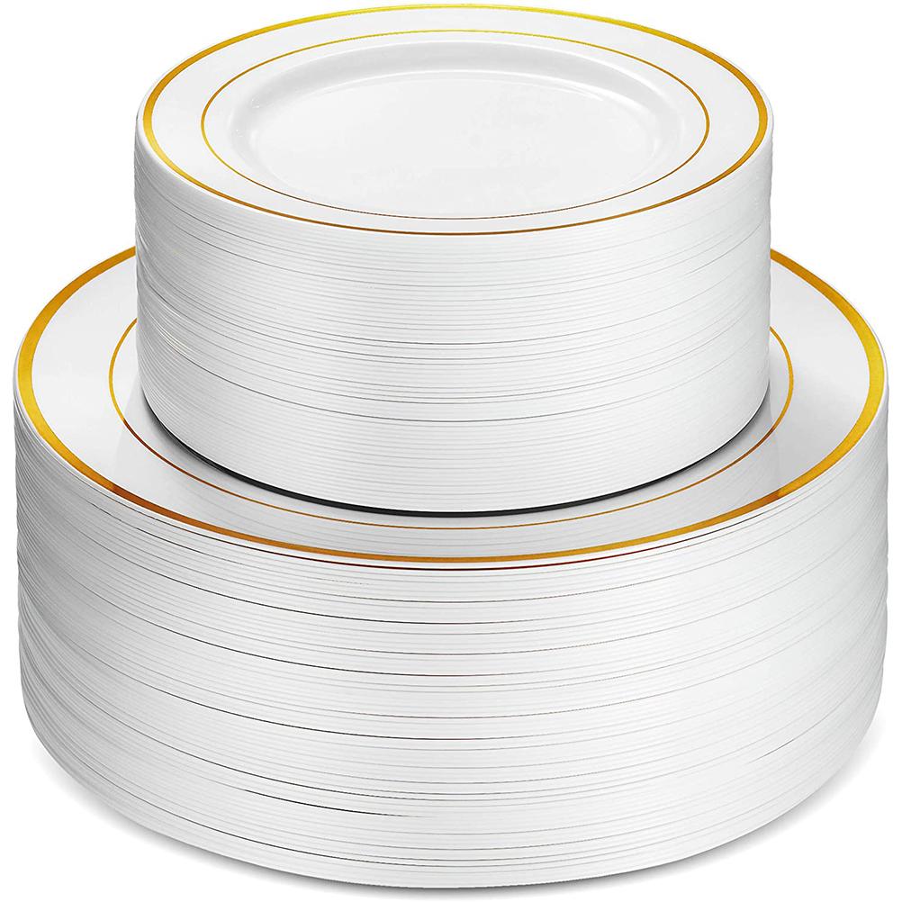 1. Отличный комбинированный набор, который может развлекать 25 гостей, 25 шт 26,6 см обеденные тарелки и 25 шт маленькие 15,2 см салатные тарелки.