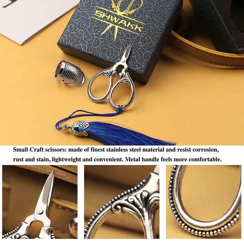 2. Элегантный дизайн: позолоченная ручка и винтажный дизайн делают ножницы стильными и элегантными, подходят для коллекции, но также подходят в качестве подарков для друзей, которым нравится делать работы или DIY.